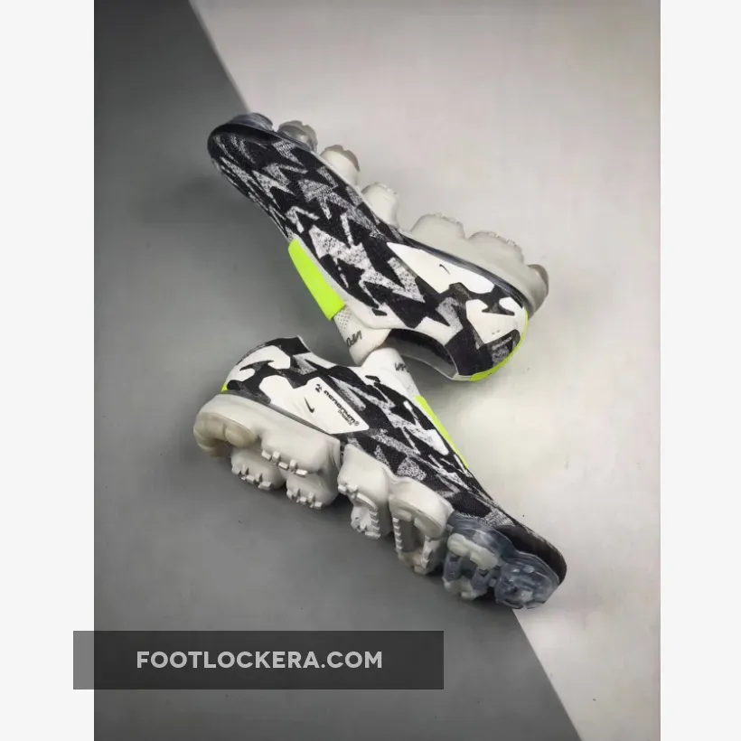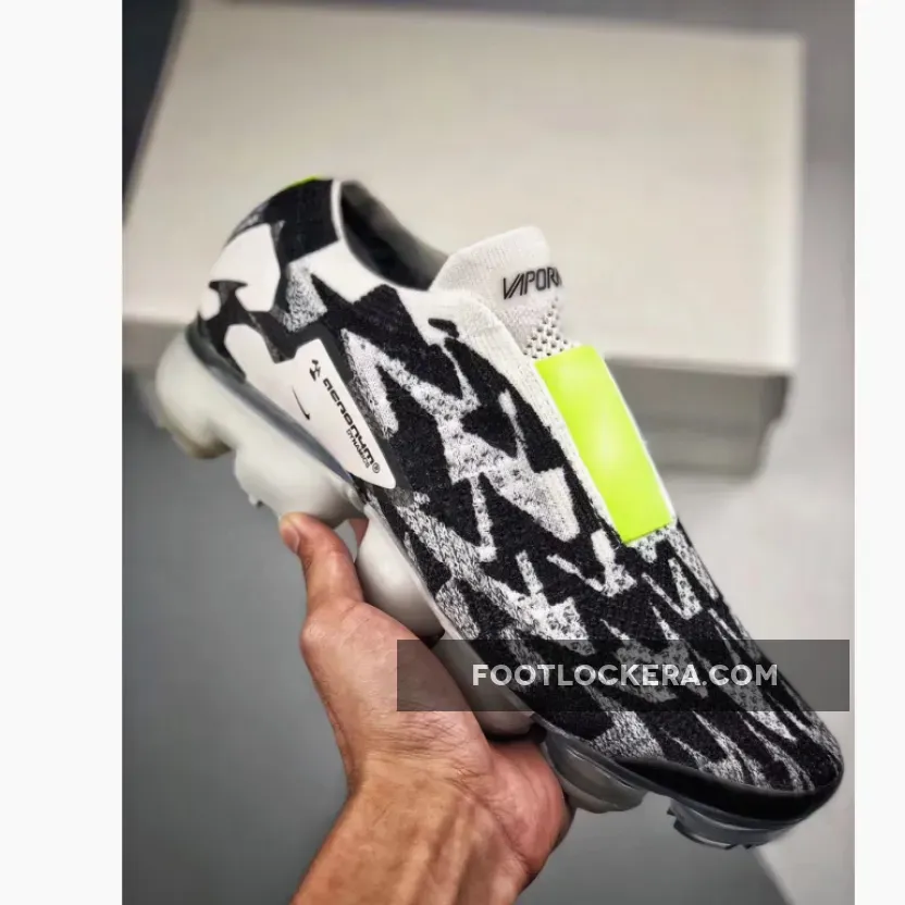 This Nike Air VaporMax Moc comes dressed in a Light Bone and Black color combination. Looking closer you can see that they feature a unique pattern across the Flyknit upper. In addition we have Volt on the overlay. Completing the look is a matte to transparent VaporMax Air unit.