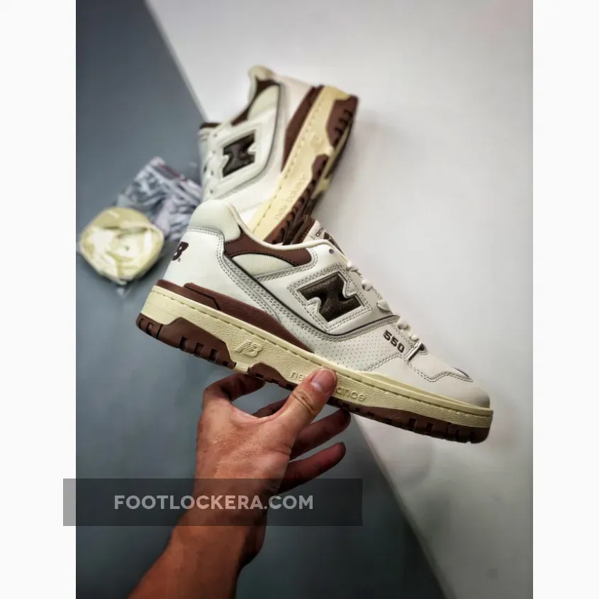 Solid collaboration. Clean white leather upper & brown accents look great. Quality materials & comfortable fit. Perfect for everyday wear. #ALDxNB550 #SneakerheadsLoveIt