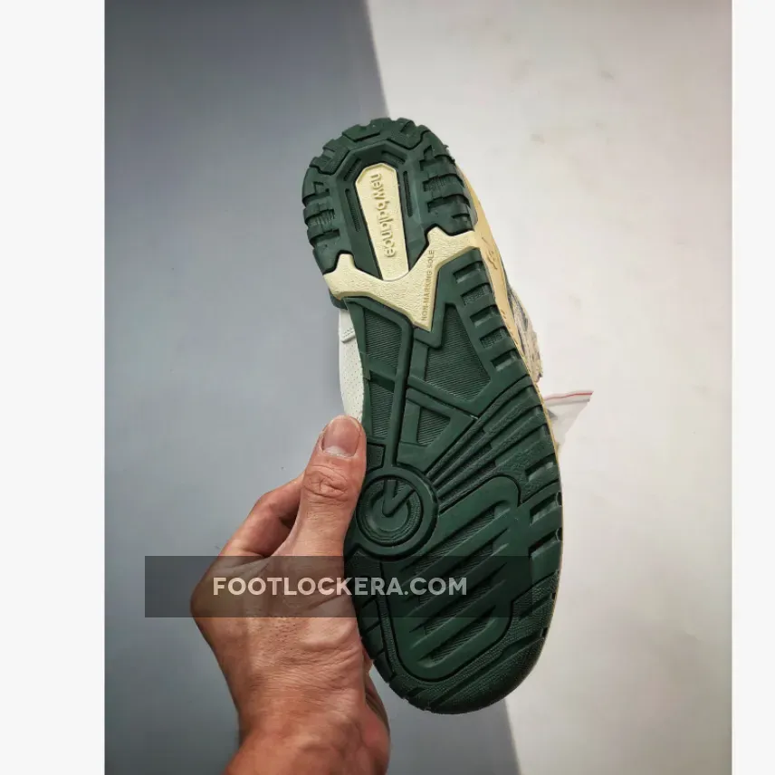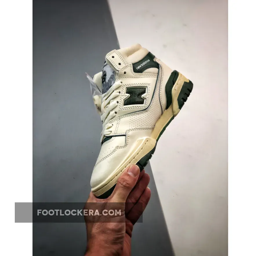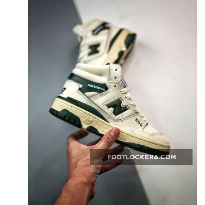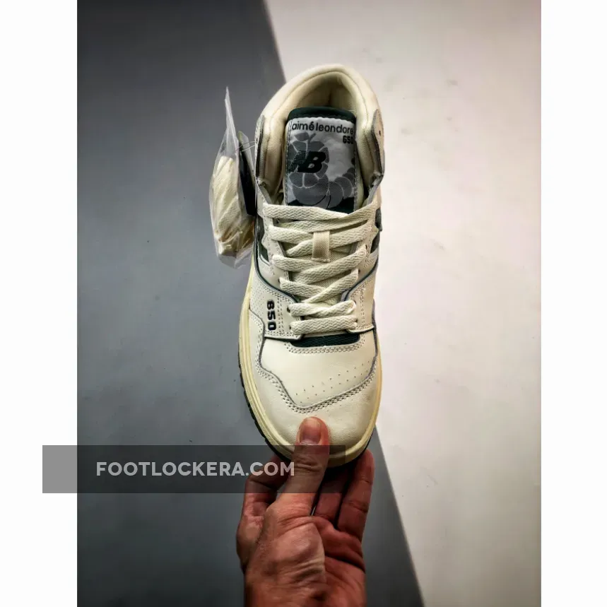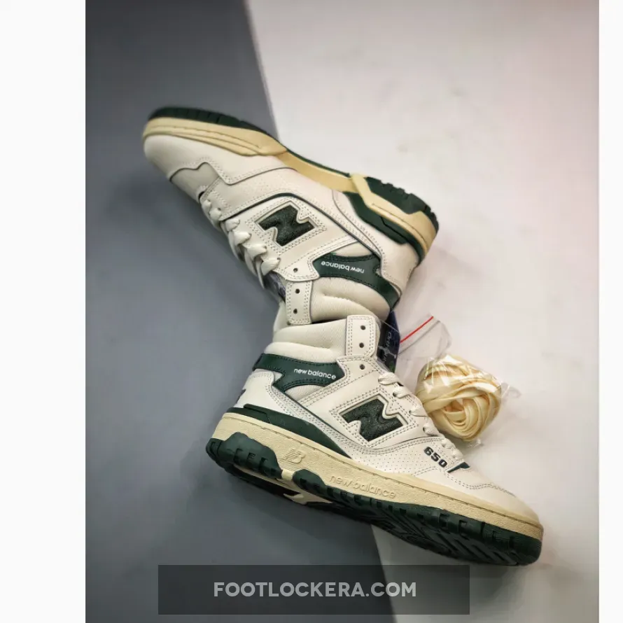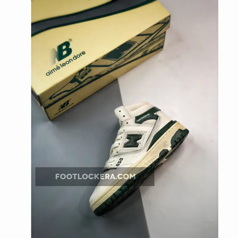 The Aimé Leon Dore x New Balance 650R ‘Green’ revives an ‘80s hoops shoe in an elemental two-tone palette. The high-top carries a white full-grain leather upper with contrasting green accents throughout. They include the signature ‘N’ logo, a molded heel clip, and a leather overlay that wraps around the padded mesh collar. A co-branded woven tag decorates the tongue, while mismatched ALD and NB logos grace the heel of the left and right shoe. The sneaker sits atop a sturdy rubber cupsole, featuring aged sidewalls and an exposed EVA wedge on the medial side.