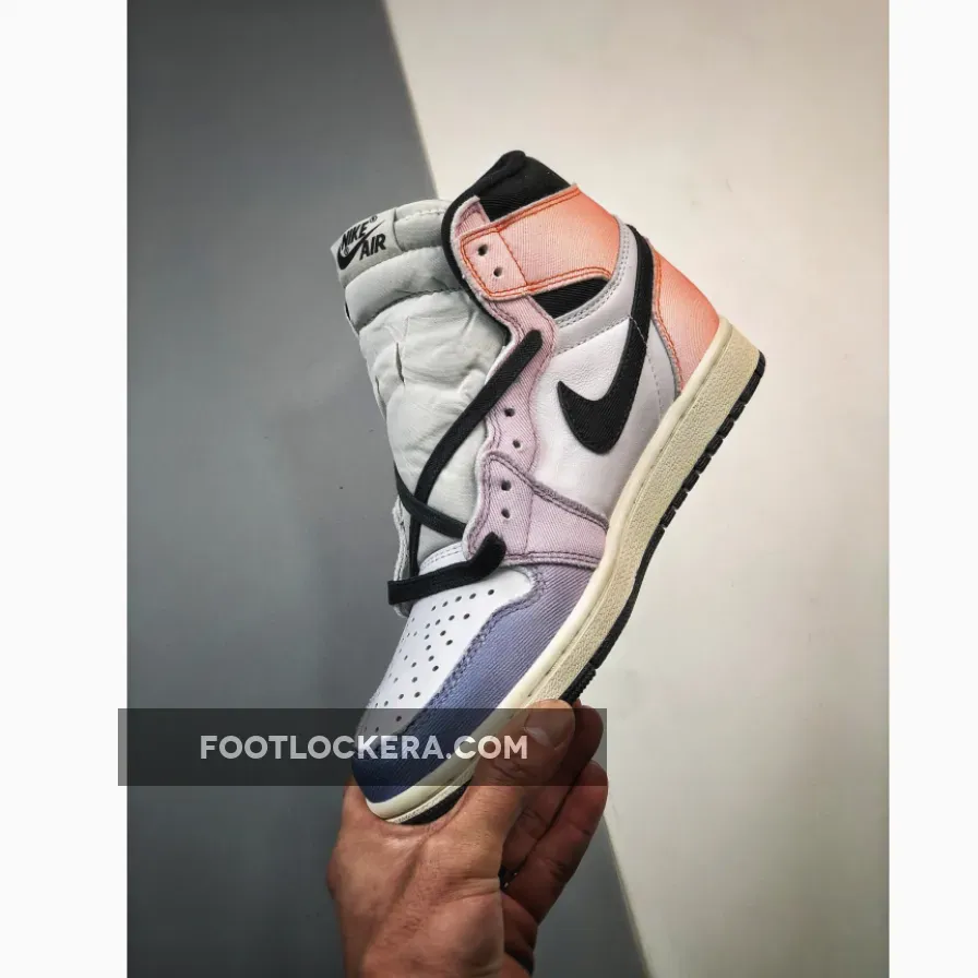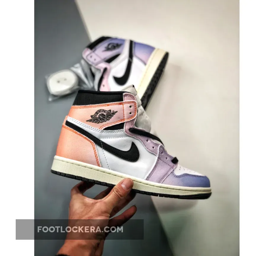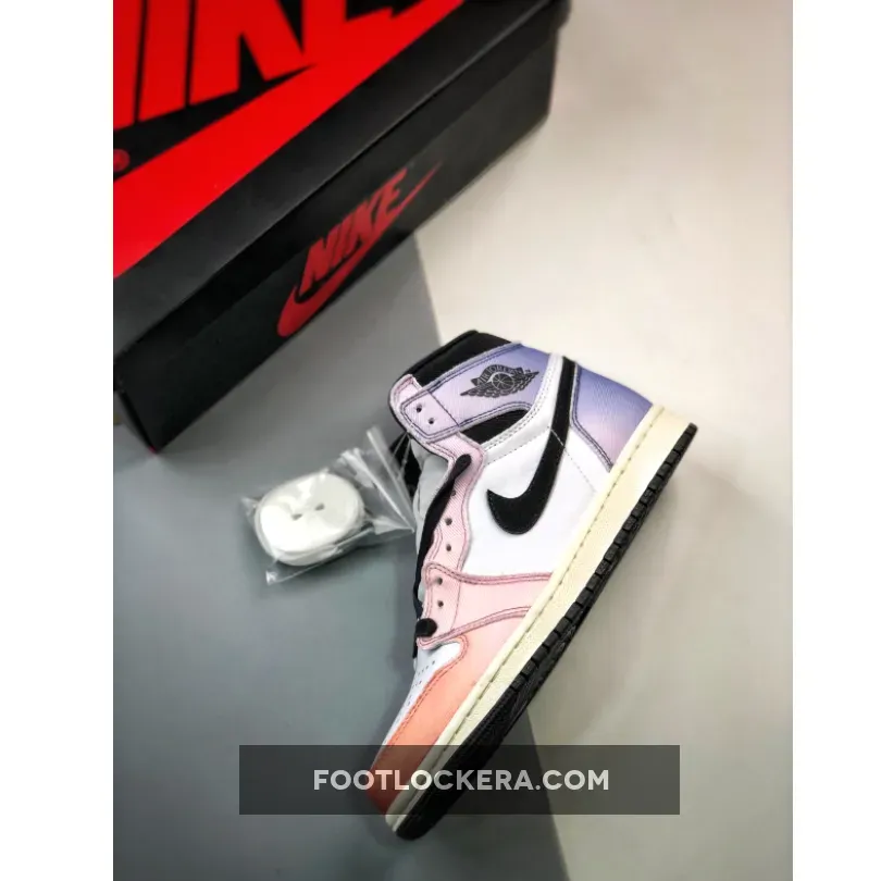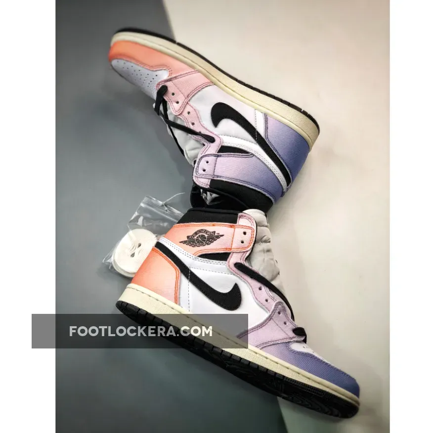 this pair is said to draw inspiration from the classic promotional image for the original Air Jordan 1 that saw Michael Jordan in his Jumpman pose against Chicago’s skyline at sunset, hence the pink to purple gradient overlays. The Swoosh, ankle collar, and Wings logo are seen in black, as well as the tongue tag that features Nike Air branding in white. Lastly, the sneaker uses a Sail midsole with a black outsole to finish off the sneaker. More importantly, the overlays pair contrast stitching with a denim material that sees purple and pink combine, with each shoe favoring a color distribution opposite of the other.