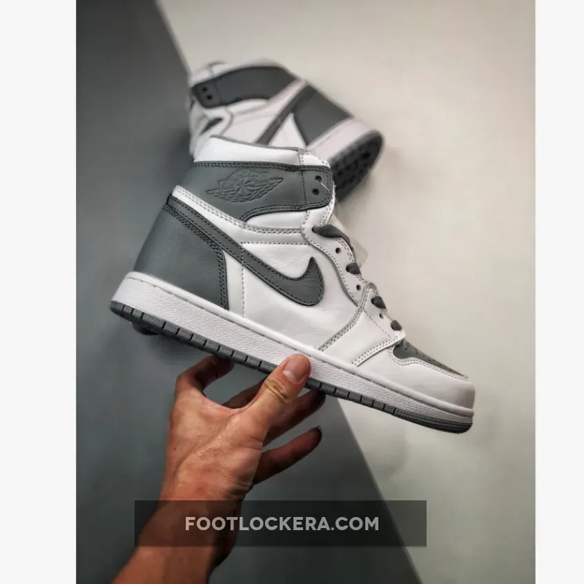 The Air Jordan 1 High introduces a new and minimalist colourway, the Air Jordan 1 High OG Stealth. This AJ1 High has a white smooth leather base showing on the toe box, the quarter and the ankle. The overlays are made of suede in “Stealth Grey” on the toe cap, the mudguard, the eyestay panel, the ankle flaps and the cupsole. The signature Nike profile Swooshes on the medial and lateral sides are also in Stealth Grey suede. The Wings logo is embossed on the lateral ankle flap.