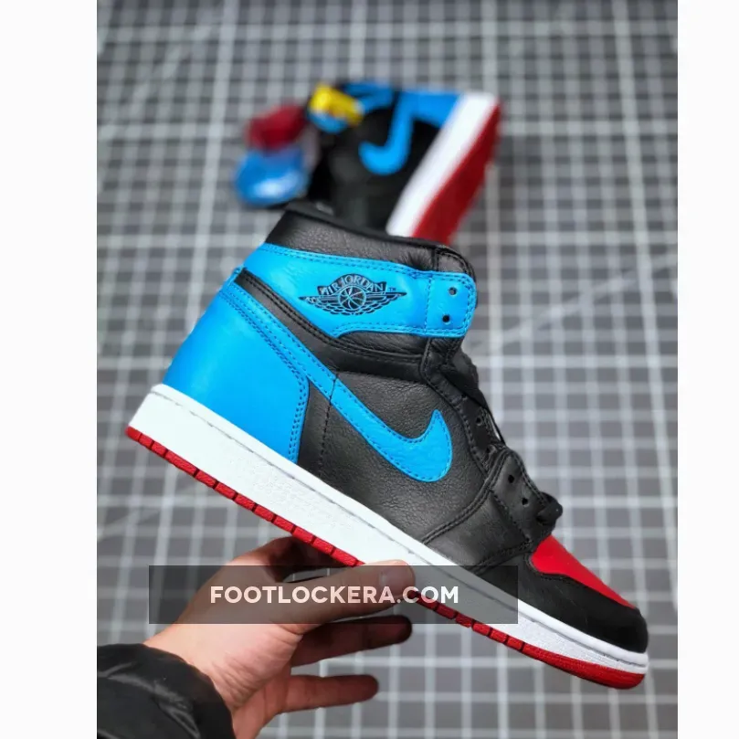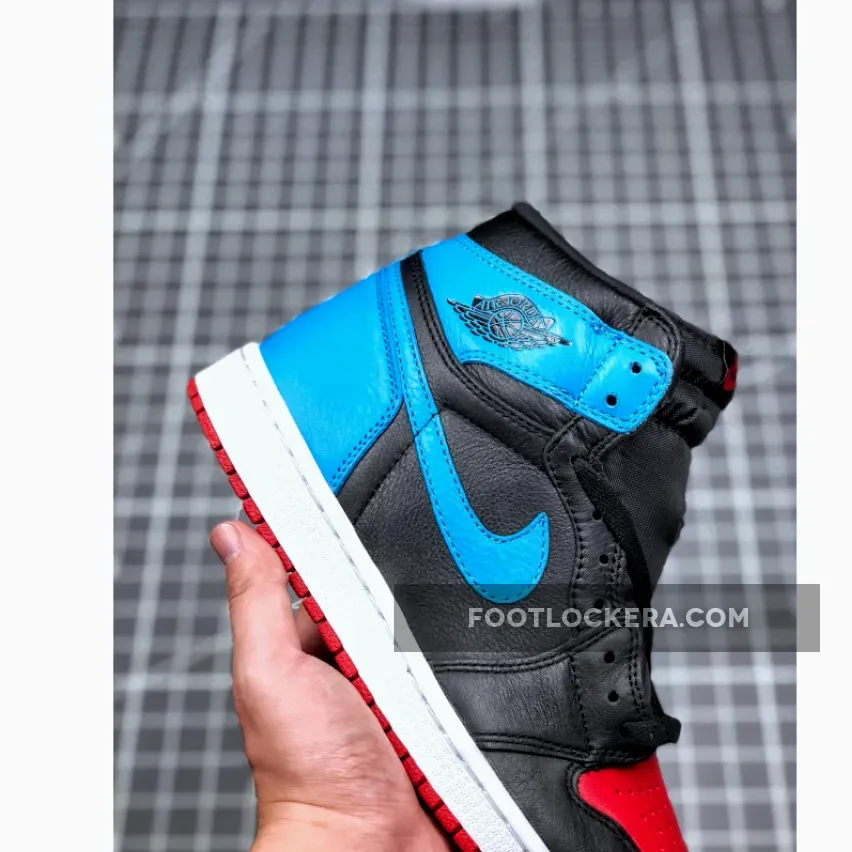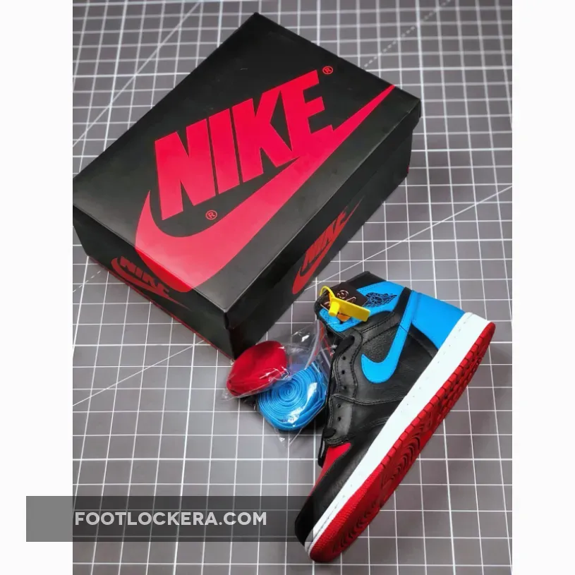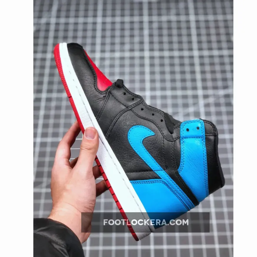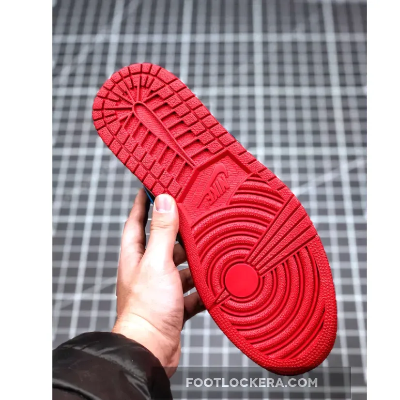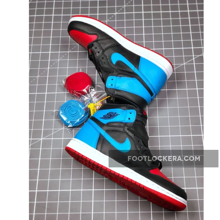 This Air Jordan 1 features a Dark Powder Blue, Gym Red, Black and White color combination. Around the heel, ankle overlay and Swoosh is down in Powder Blue while Black lands on the base, ankle collar, around the toe box and Wings logo. Gym Red is used on the toe box, Nike Air on the tongue and rubber outsole. Completing the look is a White midsole.