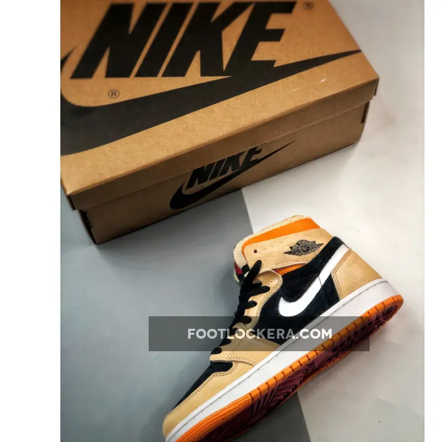 The suede of the forefoot, eye stay, lower heel and ankle flabs are in a light ginger orange colour. A bright pumpkin orange stands out in this pair’s collar and outsole. A Halloween black contrasts nicely on the nubuck toe box, the laces, the quarter panelling and the Wings logo embossed on the collar. Use our Air Jordan 1 size guide to know how they fit.