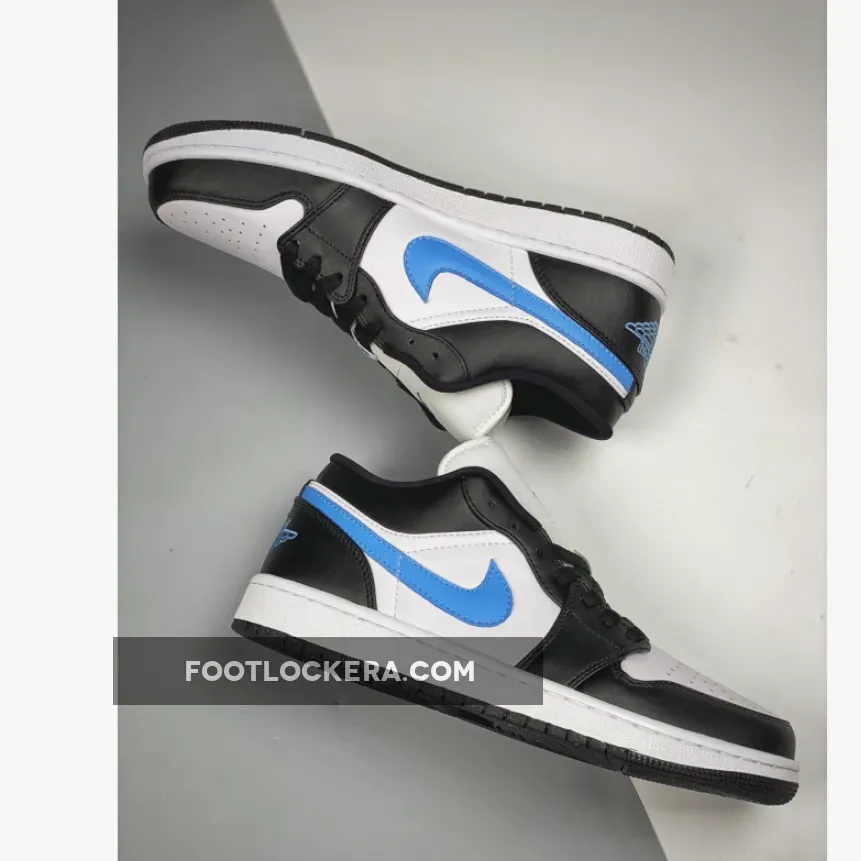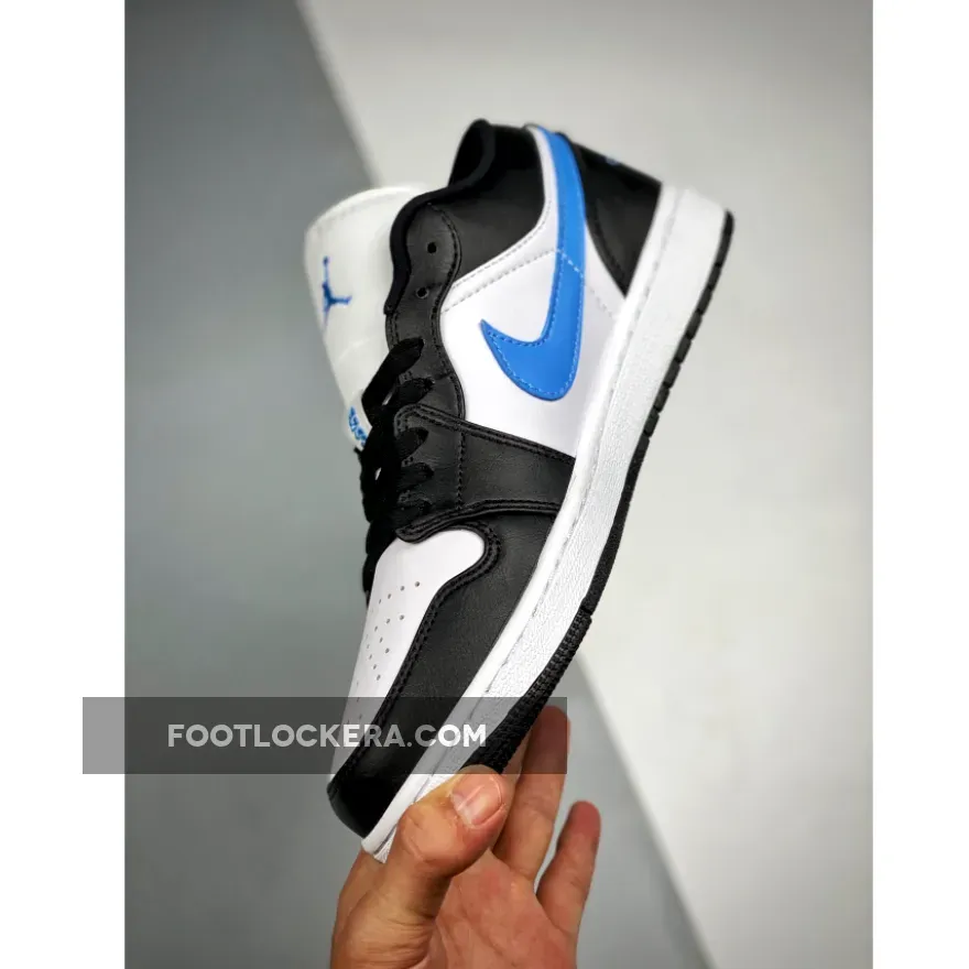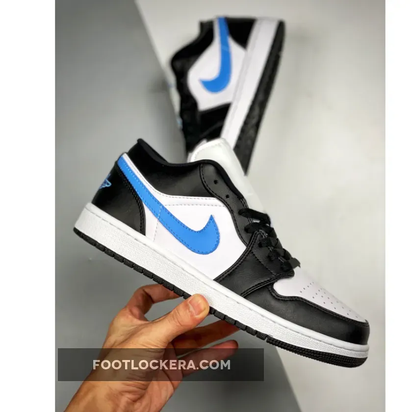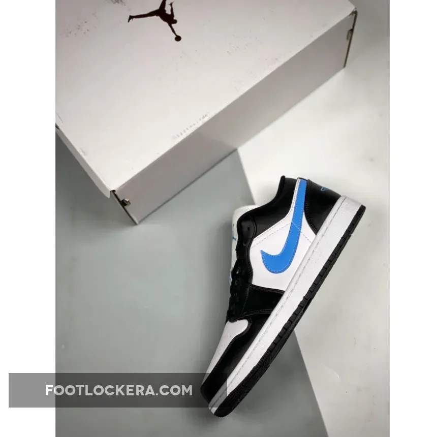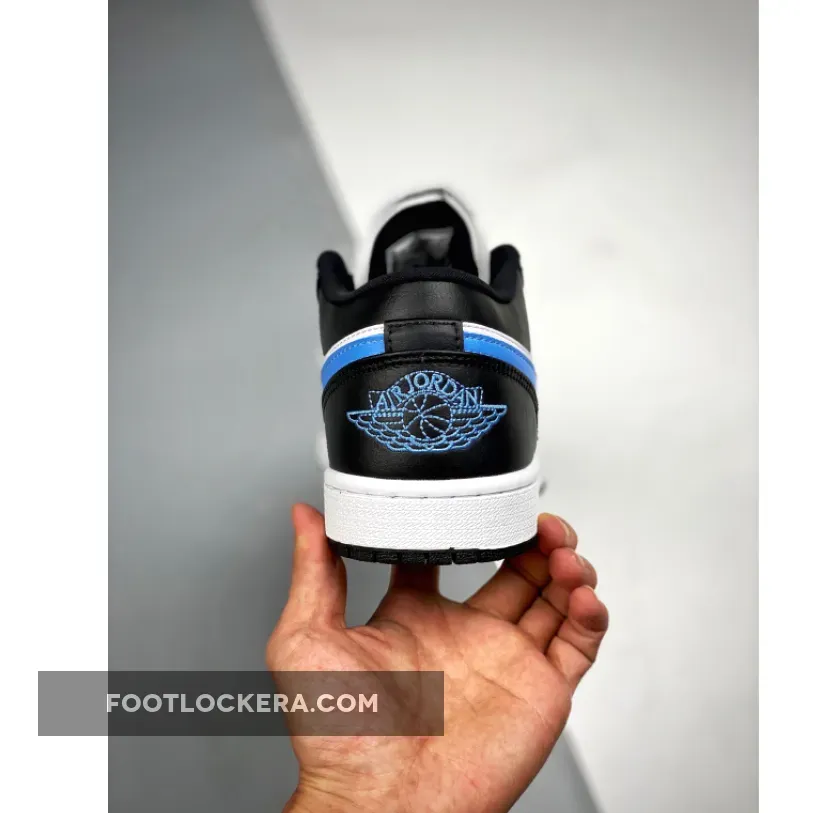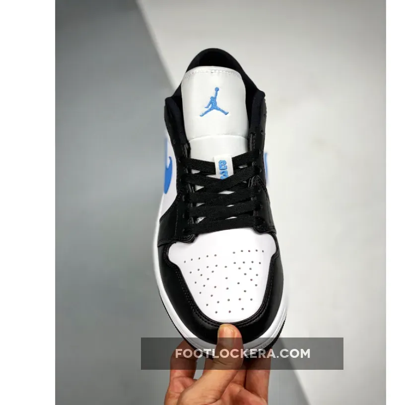 Air Jordan 1 Low Black University Blue is here to show that classics will never let you down. This casual low-top shoe starts with a classic white leather base and is reinforced with sleek black leather overlays. If you’re looking for a fresh everyday shoe, this Air Jordan 1 Low is definitely a choice you won’t regret.