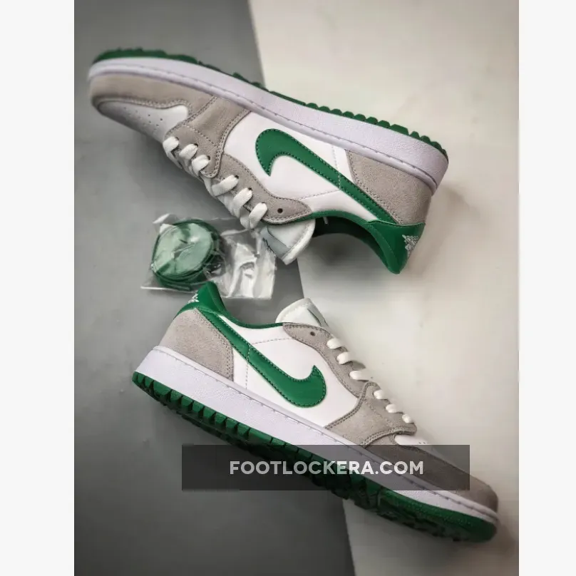 Its refreshing White, Pine Green, and Light Smoke Grey palette mirrors lush golf courses and the St. Patrick’s Day spirit. The white leather upper keeps things classic, while pine green accents infusing a pop of color on the Swoosh, heel, insole, and liner.