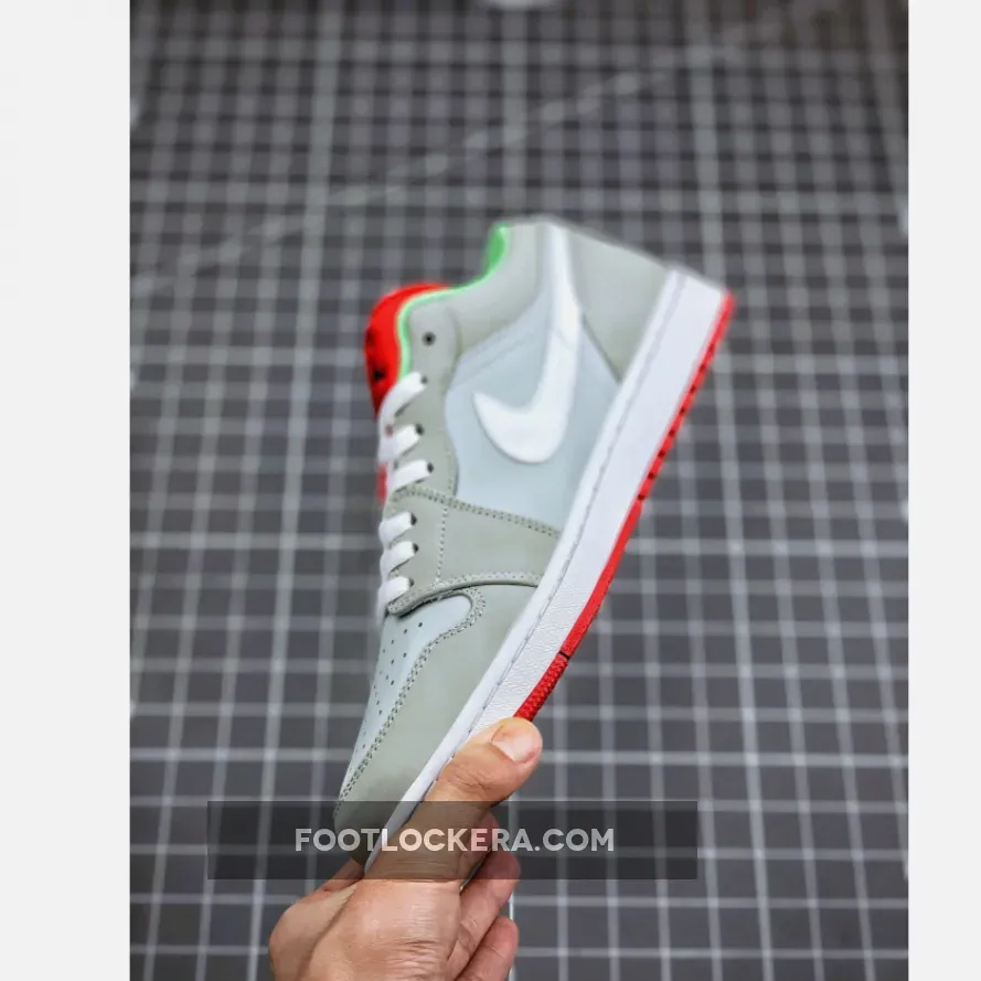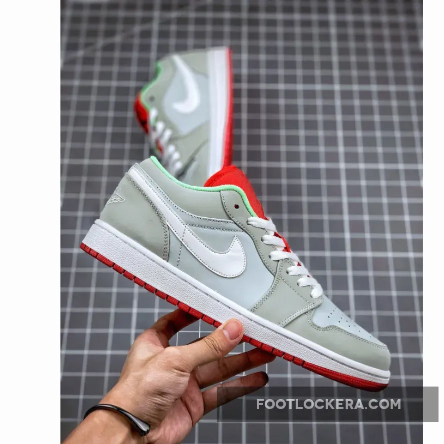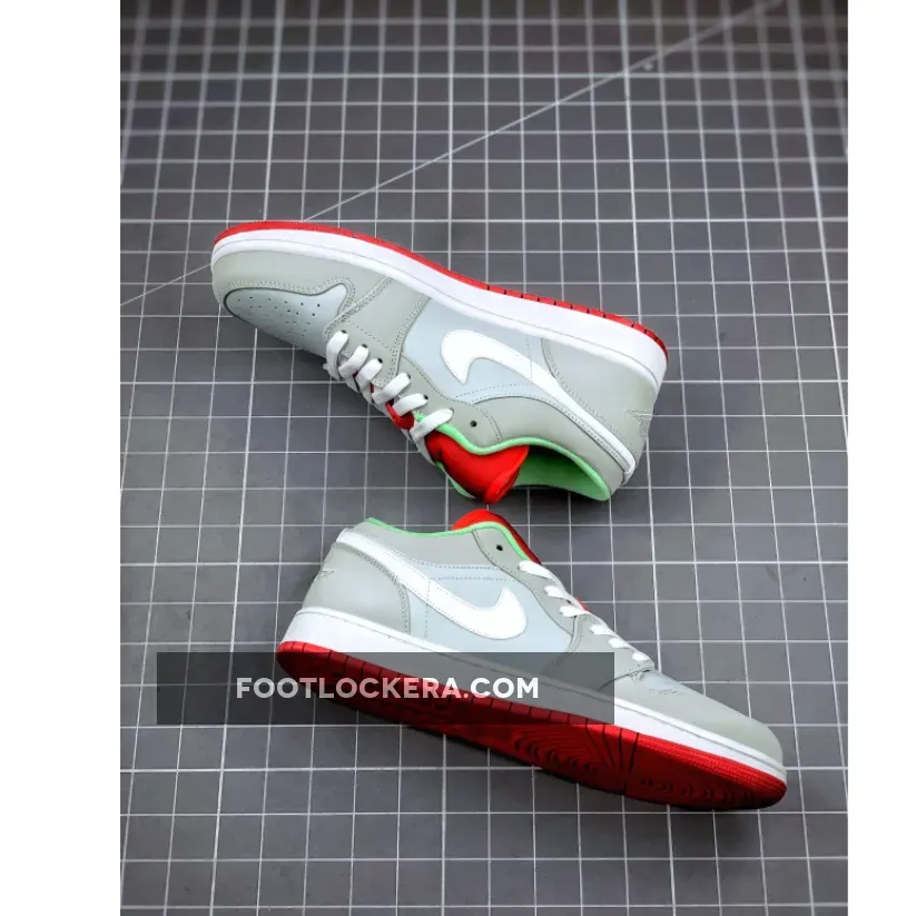 The shoe is dressed in a Grey Mist, University Red, and Poison Green color scheme. Featuring a full Grey nubuck upper that includes White detailing on the Nike Swoosh logos, laces and midsole.