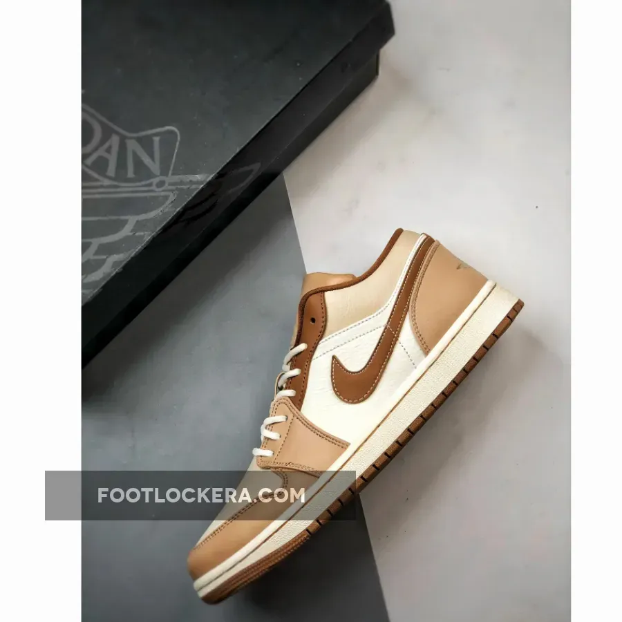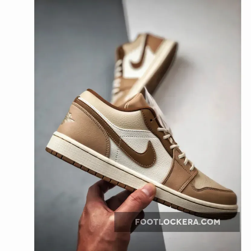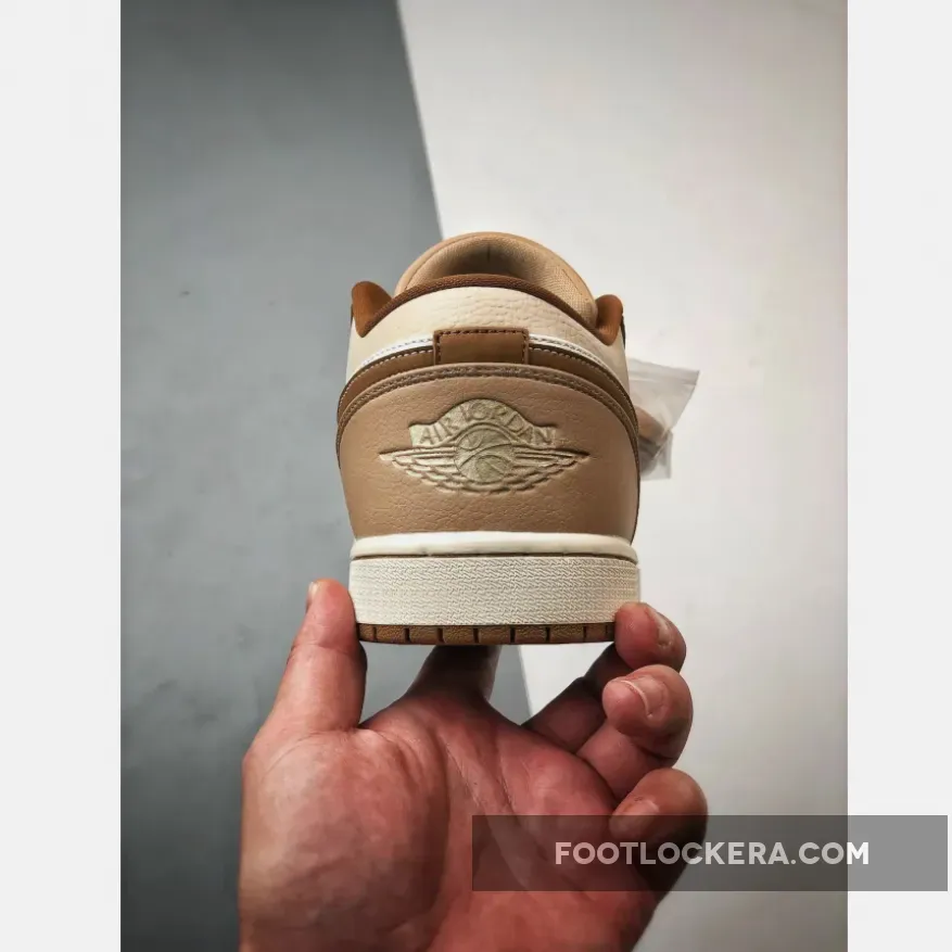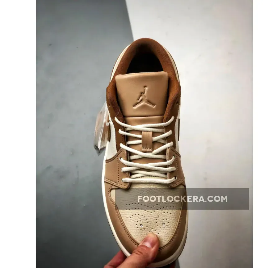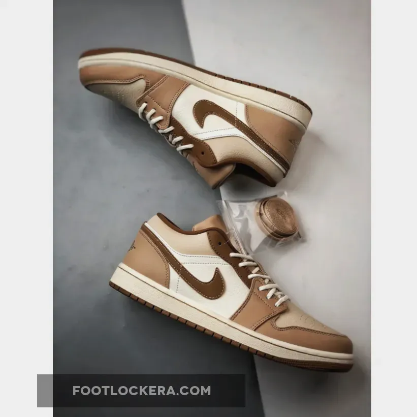 Crafted with an exquisite selection of tan and sail leathers, this Air Jordan 1 Low is anything but ordinary. Each piece of leather used in the sneaker’s construction offers its distinct hue and texture, creating a harmonious blend of natural colors that evoke the understated luxury of traditional dress shoes. Adding to this rich tapestry are brogue-style perforations at the toe, a nod to the meticulous craftsmanship and detail-oriented design that define high-end footwear.