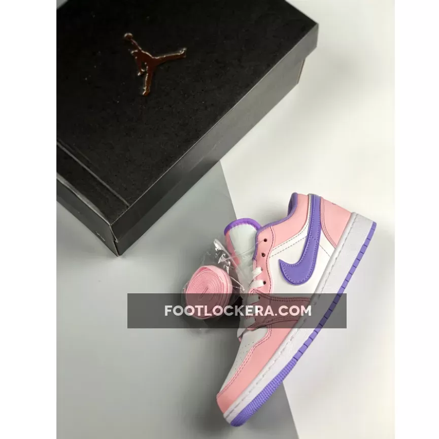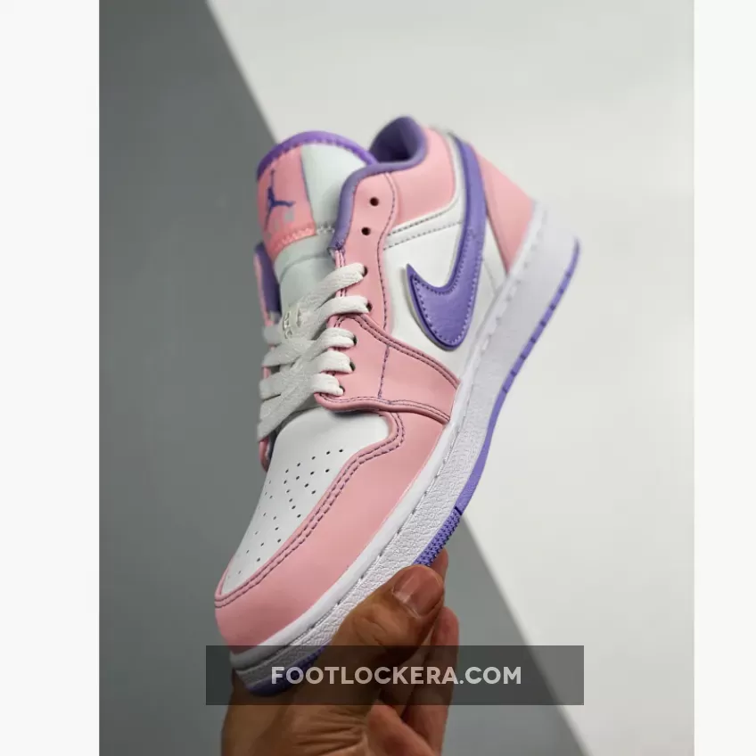 This Air Jordan 1 Low SE “Arctic Punch” gets dressed up in white, pink, and purple. White is seen on the smooth leather base, while pink is used to accent the leather overlays and tongue tab. Finally, purple comes arrives on the Swoosh insignias, outsole, and inner liner. The purple hue additionally adds a contrasting look to the exposed stitching throughout.