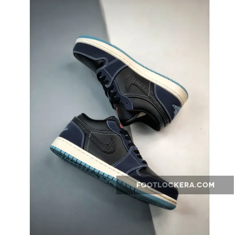 “I’m loving my new Air Jordan 1 Low Snakeskin! The unique snakeskin- effect Swoosh is so cool ?. The black leather and dark blue suede combo looks sleek ?. The removable pendants are a nice touch ?. Overall, I’m really impressed with the design and quality ?.”