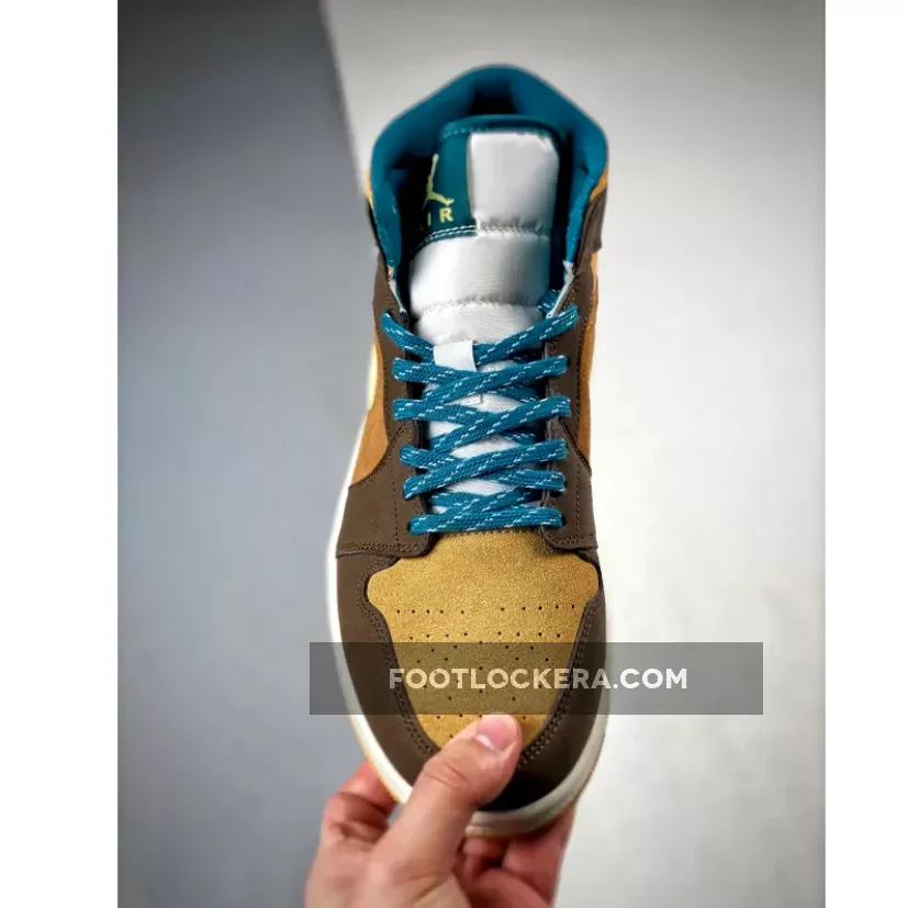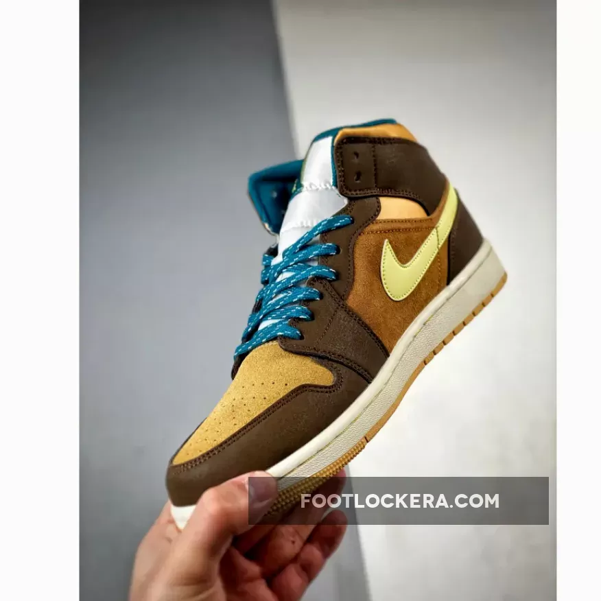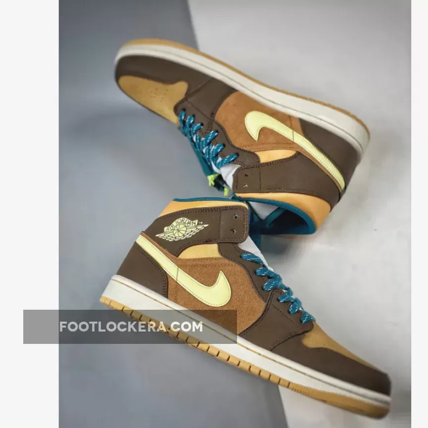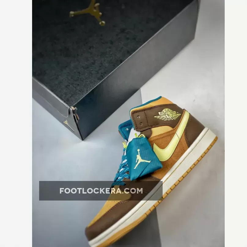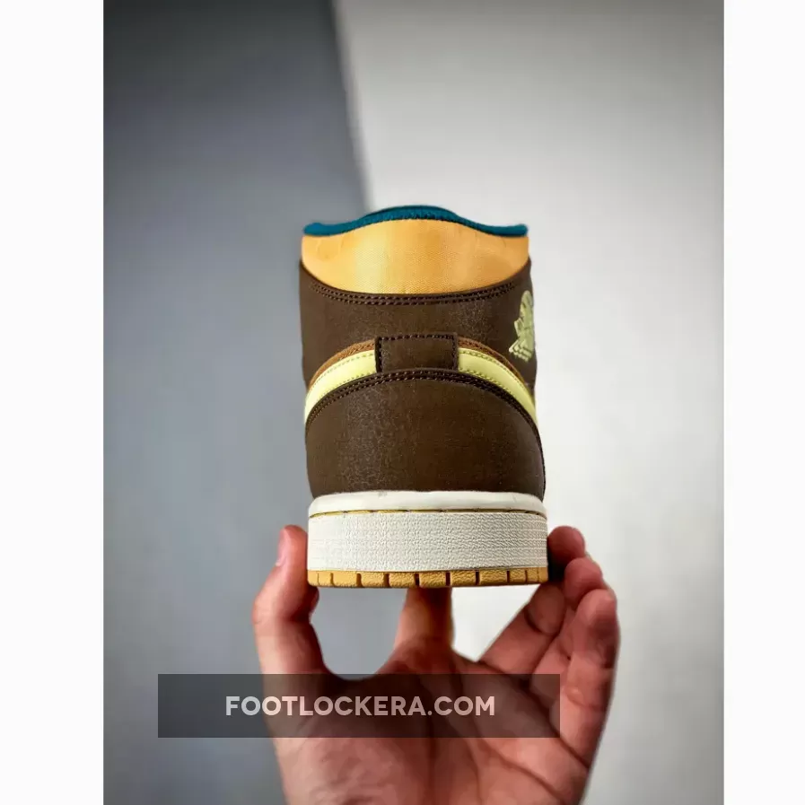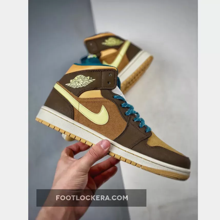 This offering of the Air Jordan 1 Mid comes constructed in a mix of leather, hairy suede, and mesh materials. It features Brown tones covering majority of its upper with Yellowish Swooshes, Wings on the ankle, and Jumpman logos on the tongues and insoles. In addition to being cosy and supportive, the mid-top sneaker’s perforated toe box and breathable materials keep you fresh even on the hottest summer days.