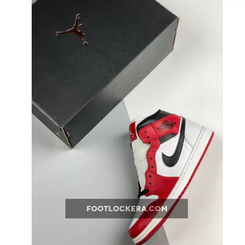 Dressed in a familiar “Chicago” color blocking that mixes White, Gym Red, and Black. This mid-top Air Jordan 1 sports a White leather base with Red leather overlays paired with Black covering the ankle collar, laces, and Swoosh logo.