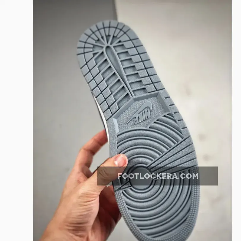 Contrasting these elements, the sneaker employs immaculate, flat white leather for the toe-box and mid-panel, maintaining the Air Jordan 1’s heritage of court-inspired style and urban functionality.