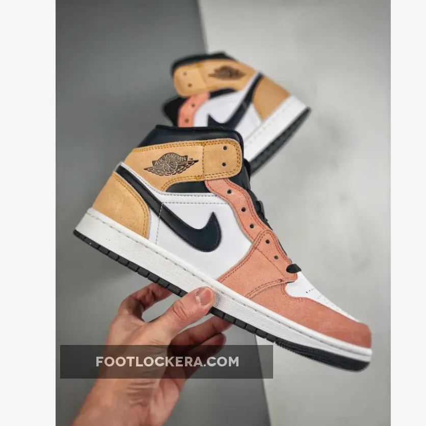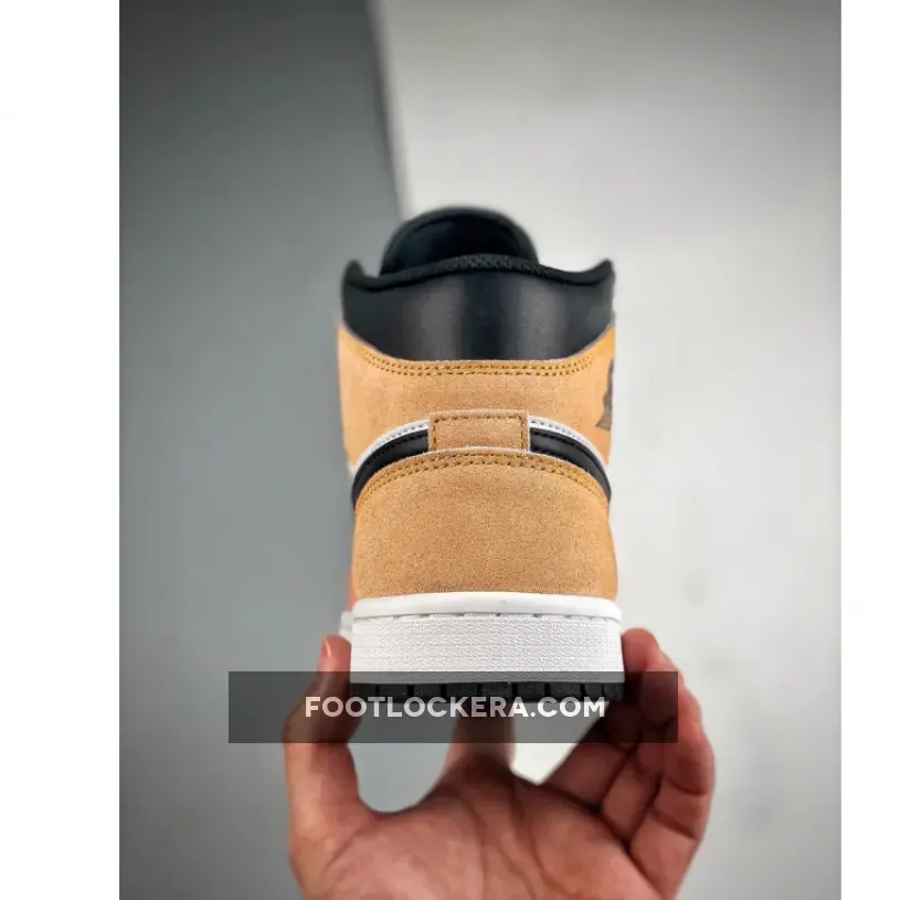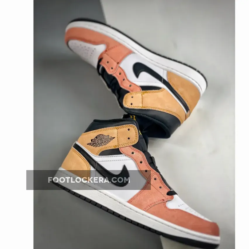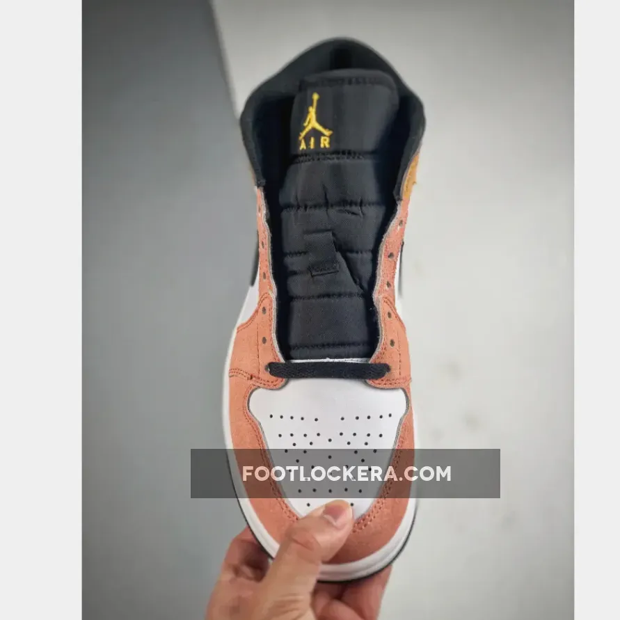 the pair possesses a dusk-like graduation from orange suedes at the toe to golden tints in the rear. It’s met in the middle — and at the toe — by bright white leathers, with bold blacks in support at the collar, Swoosh overlays, liners, laces, and tongue. The embroidered Jumpman logos on the tongues are Gold while the Wings logos on the lateral collar flaps are stamped in black. A white midsole and a black rubber outsole wrap up the look of this sneaker.