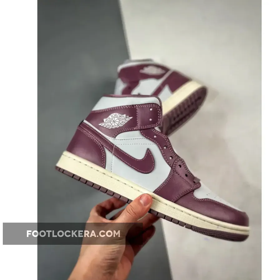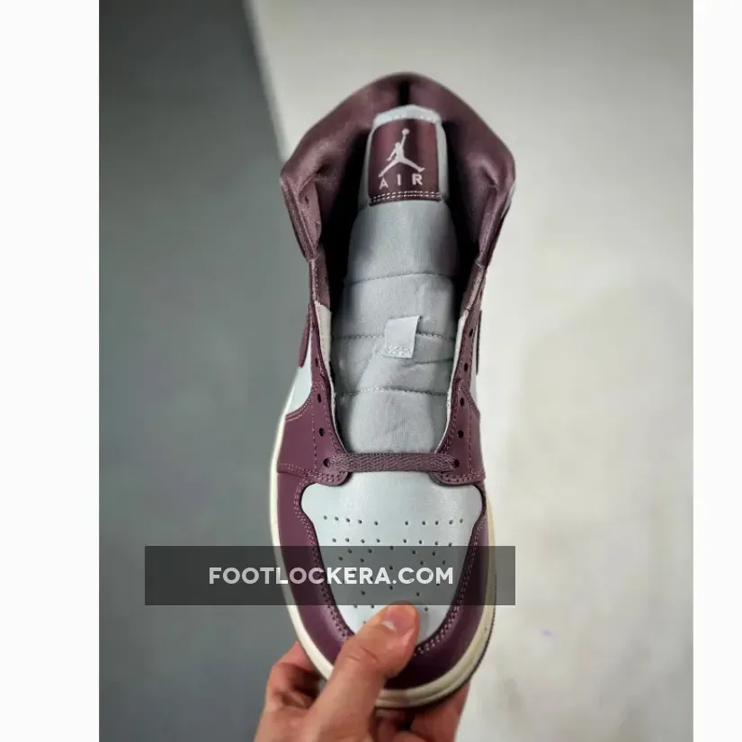 The Jordan 1 Mid boasts a stunning two-tone look. The dominant Sky J Mauve shades cover the mudguard, eyestays, heel overlay, and collar, while Pure Platinum leather graces the toebox, quarter panel, and collar, creating a well-balanced contrast. Mauve accents continue on the lace set, sockliner, Swooshes, and tongue tags, while the Jumpman and Jordan Wings logos boldly stand out in Pure Platinum. The sneaker is completed with a Sail midsole atop a Mauve rubber outsole.