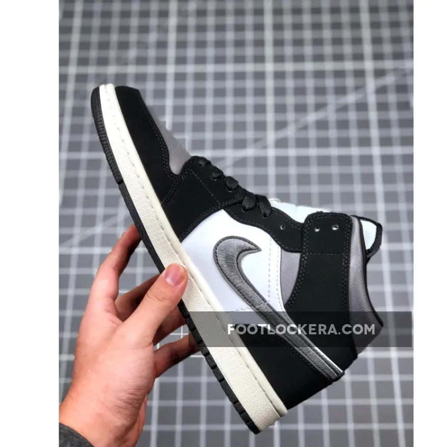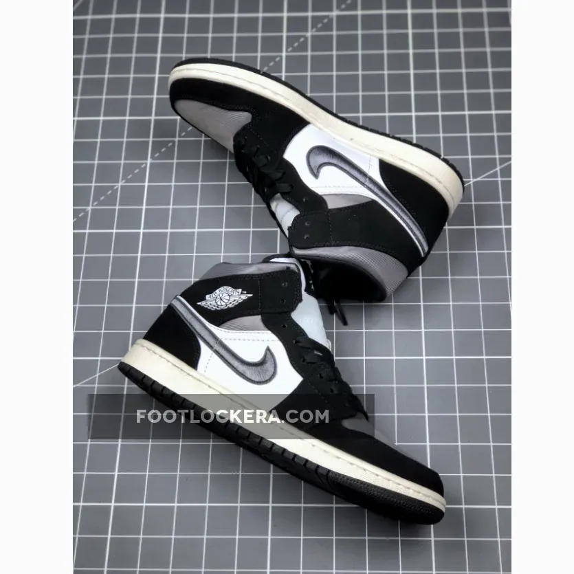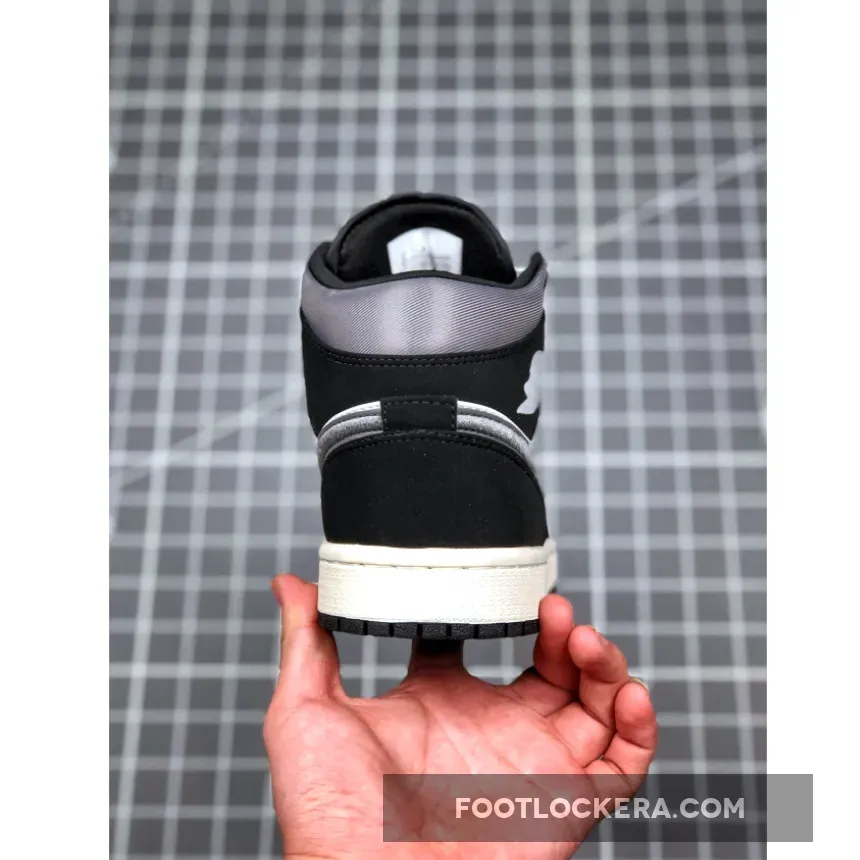 The Air Jordan 1 Mid SE ‘Satin Smoke Grey’ showcases the timeless appeal of the AJ1 silhouette, updated here with a neutral color scheme and nontraditional materials. The upper is constructed from a blend of white leather at the quarter panel and shiny grey satin at the toe box, collar and Nike Swoosh. Black suede overlays are applied to the forefoot, heel and collar, the latter featuring a classic Wings logo on the lateral side.