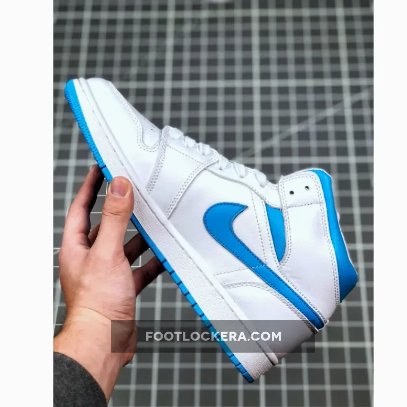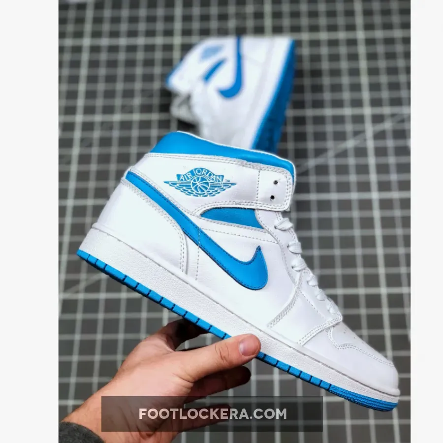 The Air Jordan 1 Mid UNC offers a classic look with subtle UNC vibes. The leather upper in white base pairs beautifully with powder blue overlays and Nike swoosh logos. The white midsole and light blue outsole maintain a timeless elegance. Overall, a well-designed shoe that captures the essence of UNC in a refined manner.