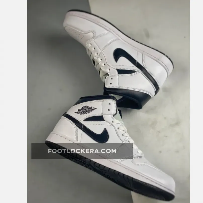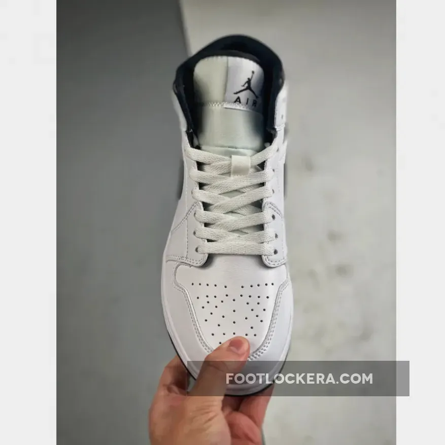 A less-is-more philosophy guides the design approach of the new Air Jordan 1 Mid. Most of the release is dressed in a crisp, clean white, creating a classic and versatile base. The simple, staple leather construction enhances the shoe’s uncluttered aesthetic. Key elements such as the leather upper, nylon tongue, laces, and midsoles are all adorned in this pure white hue.