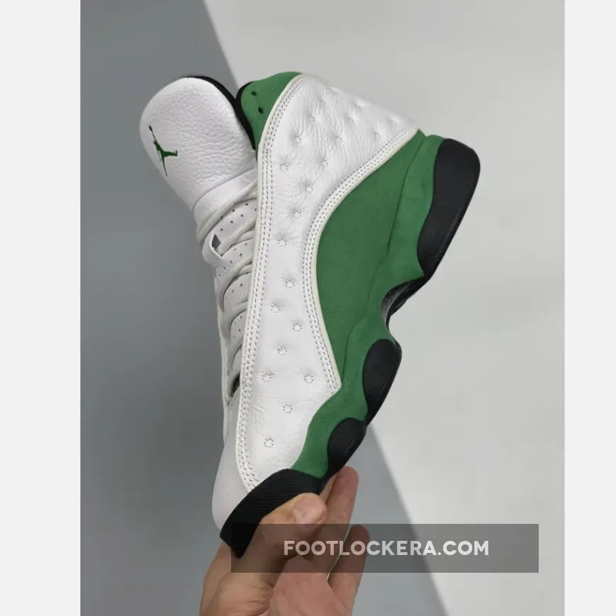 The Jordan 13 Lucky Green is the latest high-profile Air Jordan release from Jordan Brand that’s set to launch to the masses soon. The well-loved silhouette is decked out in a neat colour blocked look that appears visually similar to Ray Allen’s “Three Point Record” PE pair from 2011. If you’re a serious Air Jordan head then you already know that these are a pair that you need in your collection. We’ve got a release date, retail price, official images and a detailed look right here. Decked out in a white, green and black colorway, the pair are crafted from a range of materials including a white leather upper, synthetics and canvas for a durable and comfortable design. Classic AJ13 features are present throughout including a jewelled holographic emblem Jumpman logo on the lateral collar. Plenty of padding is provided with green suede overlays around the ankles, making these ideal for court basketball. The lucky green colorway looks ultra clean here, and is rumoured to see a new Air Jordan 1 release later this year. In addition, extra branding is visible when taking a closer look at the tongue and heel of the shoe. Whether you’re a Michael Jordan fan or not there’s no denying that these are ideal daily steppers and the new colorway absolutely pops off.