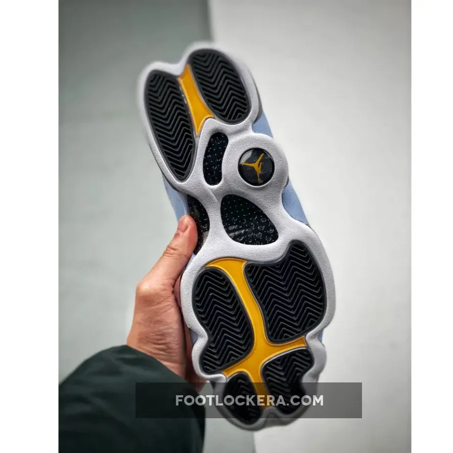 the pair sporting a white tumbled leather base with contrasting speckled “Yellow Ochre” mudguards and a black, pod-like midsole. Pale blue hues envelop the suede overlays and foam midsole, while a vibrant yellow pigment illuminates the Jumpman logo on the tongue, giving the sneaker a pop of colour. Inspired by a panther’s gleaming eyes, the shiny hologram on the ankle showcases the Jumpman logo and MJ’s iconic “23” jersey number.