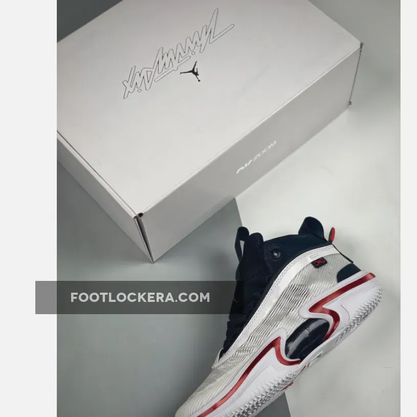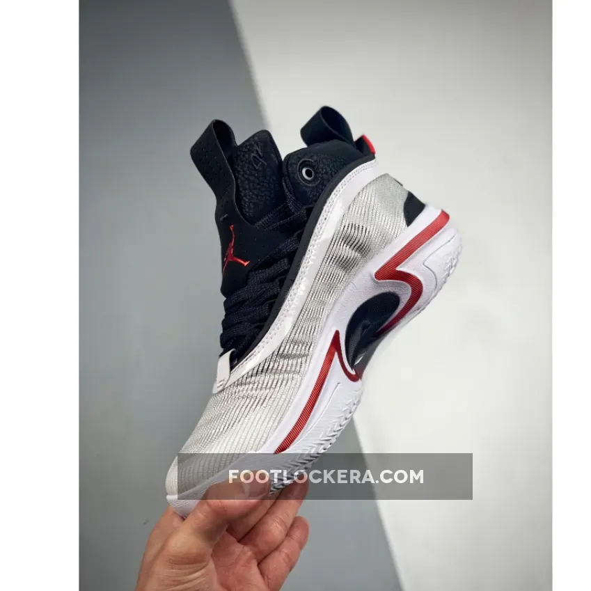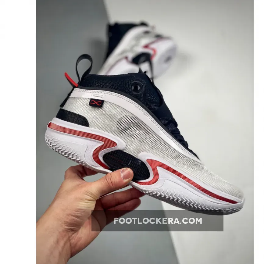 This Air Jordan 36 comes dressed in a White, Black, and Red color combination. Utilizing durable Jacquard Leno-Weave across the upper along with a TPU ribbon. One of the key highlights is the full-length Zoom Air Strobel stitched to the upper and a stacked Zoom Air unit under the forefoot.