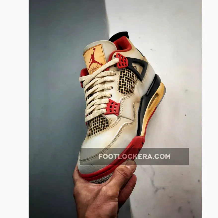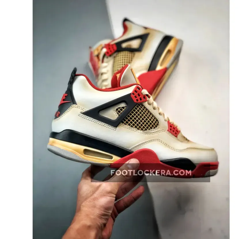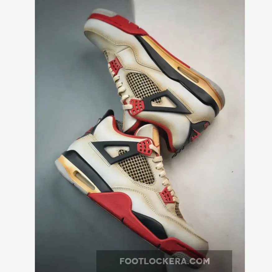 Apart from this purist-delighting heel embellishment, the “Fire Red” serves up a high-heat color scheme that mixes a white leather base with potent black and red accents alike. On the top half, black appears under the white mesh netting on the quarter panel and throat, dresses the heel tab and inner tongue patch and coats the signature “wings.” Often working in tandem with the black pieces, red graces the plastic eyestays above the “wings” and towards the toebox while also hitting the sockliner, tongue liner and the aforementioned Nike Air badge on the rear.