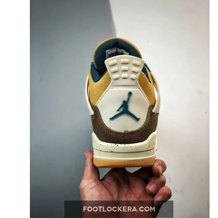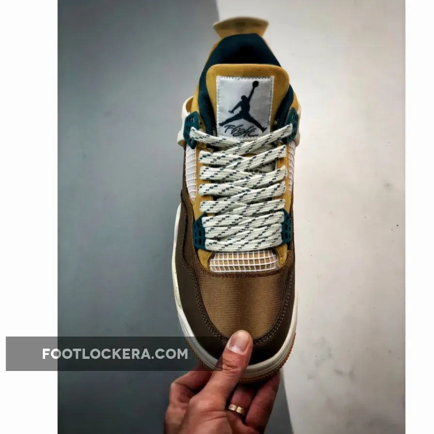 The Air Jordan 4 is currently one of the hottest Air Jordan Retros, often appearing in limited-edition collabs and popular general-release colourways. Clearly aiming for an outdoors/hiking aesthetic, Jordan Brand offers up the Air Jordan 4 with a mix of brown shades on the upper including Twine and Ale Brown, while a Geode Teal provides the perfect touch that hints at the lush green leaves of the forest.