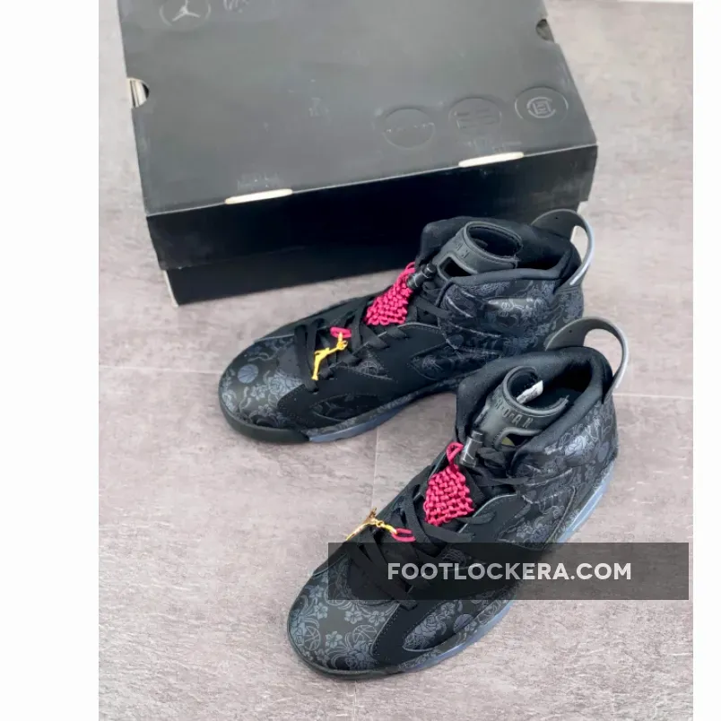 The Jordan 6 Singles Day Black is the latest Air Jordan release from Jordan Brand that’s set to honour this year’s Singles’ Day, one of the biggest events of the year in China. Dressed in a stealthy colorway, the black suede overlays take on the majority of the uppers here, with metallic gold hangtags and burgundy details completing the look. Upon a detailed look, the black color scheme showcases premium materials and unique graphics near the tongue. Underfoot, the shoe sits neatly on a black midsole, with plenty of cushioning and visible Nike Air units underfoot to ensure optimum comfort at all times. If you’re looking to cop this upcoming Air Jordan, be aware that this pair runs in women’s sizing, so make sure you get the size conversion correct. In the meantime, browse the rest of our site for all the latest footwear news and updates.