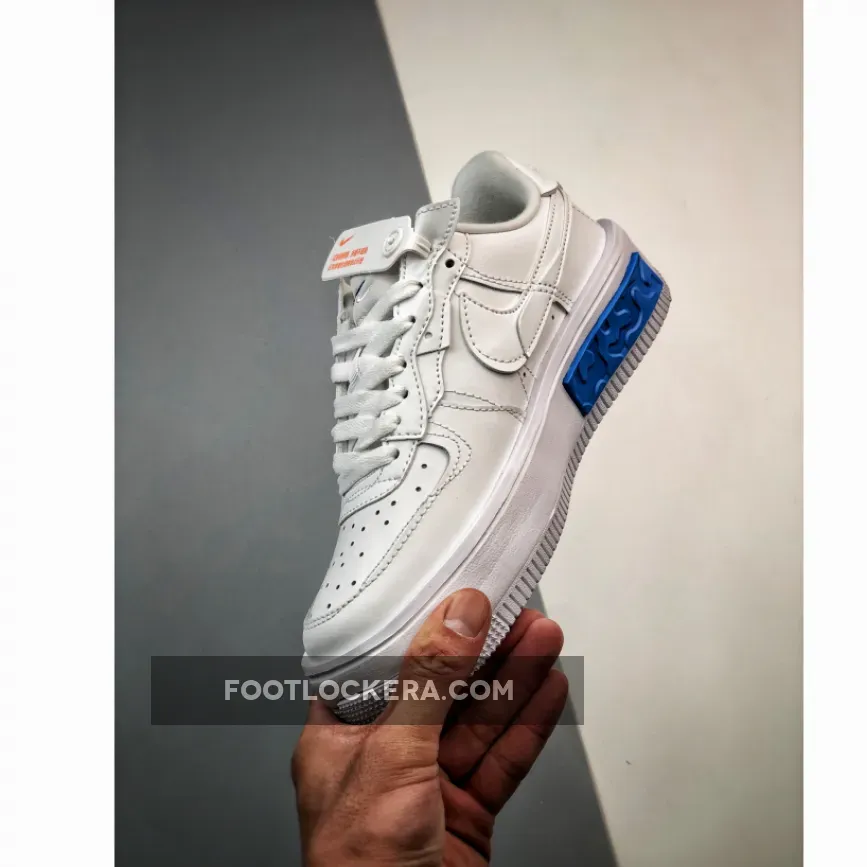 The rave scene-inspired Nike Air Force 1 Fontanka has just dropped an immaculate all-white iteration with a pop of blue. Introducing the Nike Air Force 1 Fontanka White University Blue. This AF1 Fontanka is mostly dressed in White and Summit White with a mix of smooth leather and suede. Sporting a layered aesthetic, you’ll find doubled eyelets and double stitching on the shoe. The doubled tongue shows off a University Blue Nike logo and the three Fontanka Swooshes in red, blue and green.