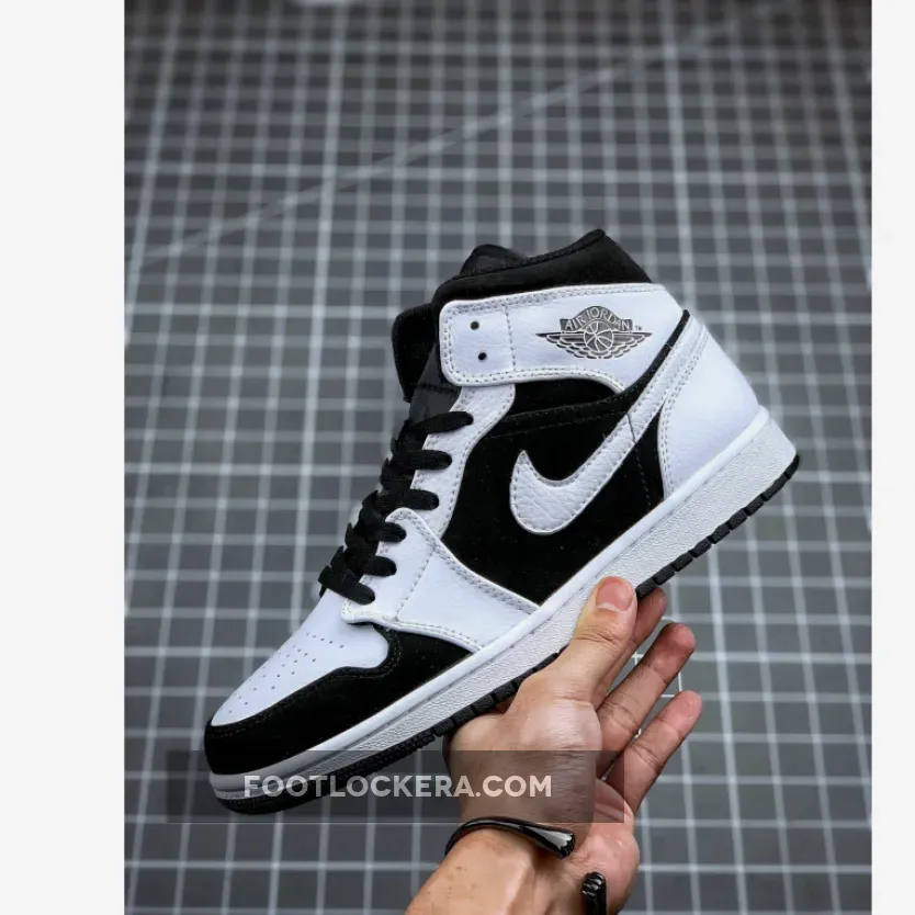 Since Michael Jordan debuted the sneaker in 1985, Nike’s Air Jordan has been a footwear staple in shoe history. The Air Jordan 1 Retro Mid ‘Tuxedo’ sneaker looks to the past and reimagines the classic design. Released in the Fall of 2018, the ‘Tuxedo’ colorway features a grained leather upper withsoft nubuck overlays and signature wings logo. The heel contains an Air-Sole unit that reinforces the cushioned midsole, while the rubber outsole ensures traction to prevent slippage.