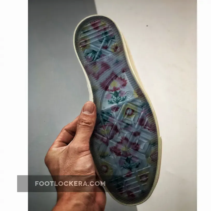The vintage-inspired Converse Chuck 70 has a pretty, blossom-covered new iteration. Presenting the Converse Chuck 70 Hi Floral Embroidery. This high-cut Chuck 70 has a neutral-coloured Desert Sand canvas upper. This is all the better to show off embroidered pink and red flowers with green leaves scattered all over the shoe. The high-shine rubber toe cap is in creamy Egret. A classic black-and-white ankle patch can be found on the medial side while a license plate-like branded rubber patch is at the base of the shoe’s spine. However, one of the most interesting things that complete the look of this sneaker is the transparent rubber tread that shows off a floral design underneath.