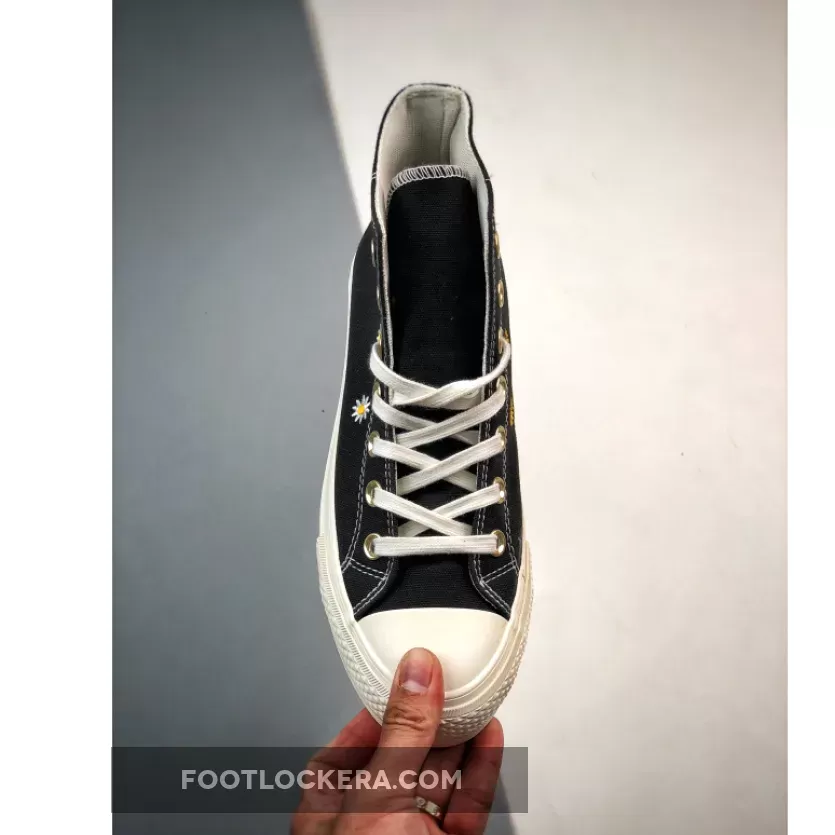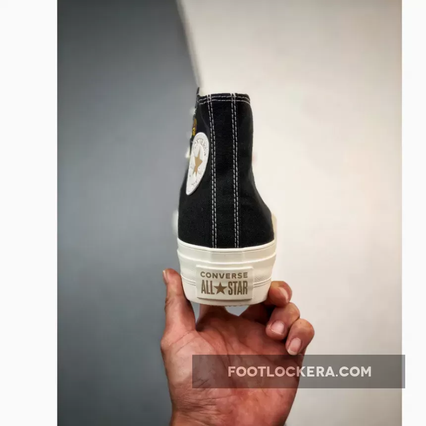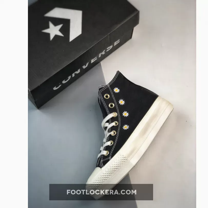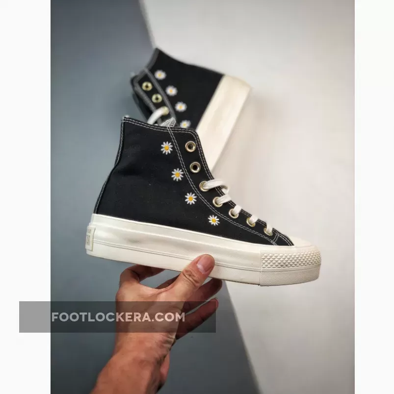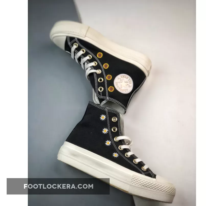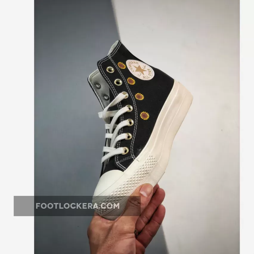 Converse’s versatile, high-top platform Chuck Taylor gets summer-ready in florals. Presenting the Converse Chuck Taylor Festival Florals Lift Platform High “Sunflower Black”.This Chuck Taylor Lift Platform has a black canvas cotton upper and contrasting egret-coloured laces. The scene-stealers on this shoe are the embroidered white and yellow daisies on the lateral side wall and the embroidered brown and light gold sunflowers on the medial side. The iconic Converse All Star ankle patch can be found on the medial side of the shoe featuring beige branding. The inner tongues feature a “Festival Smoothie” recipe in black. What platform sole units with mismatched floral-printed outsole finishes off the design of this shoe.Catch the Converse Chuck Taylor Festival Florals Lift Platform High “Sunflower Black” on Our Store Supplier app and never miss any of the latest drop dates from Converse.