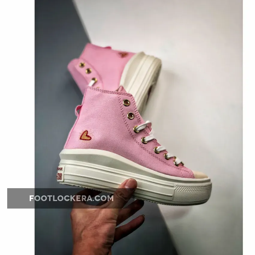 Impressed with the quality! Unique heart pattern & vibrant pink make these sneakers pop. Perfect blend of style & comfort. #ConverseMove #PlatformHearts #PinkSneakers