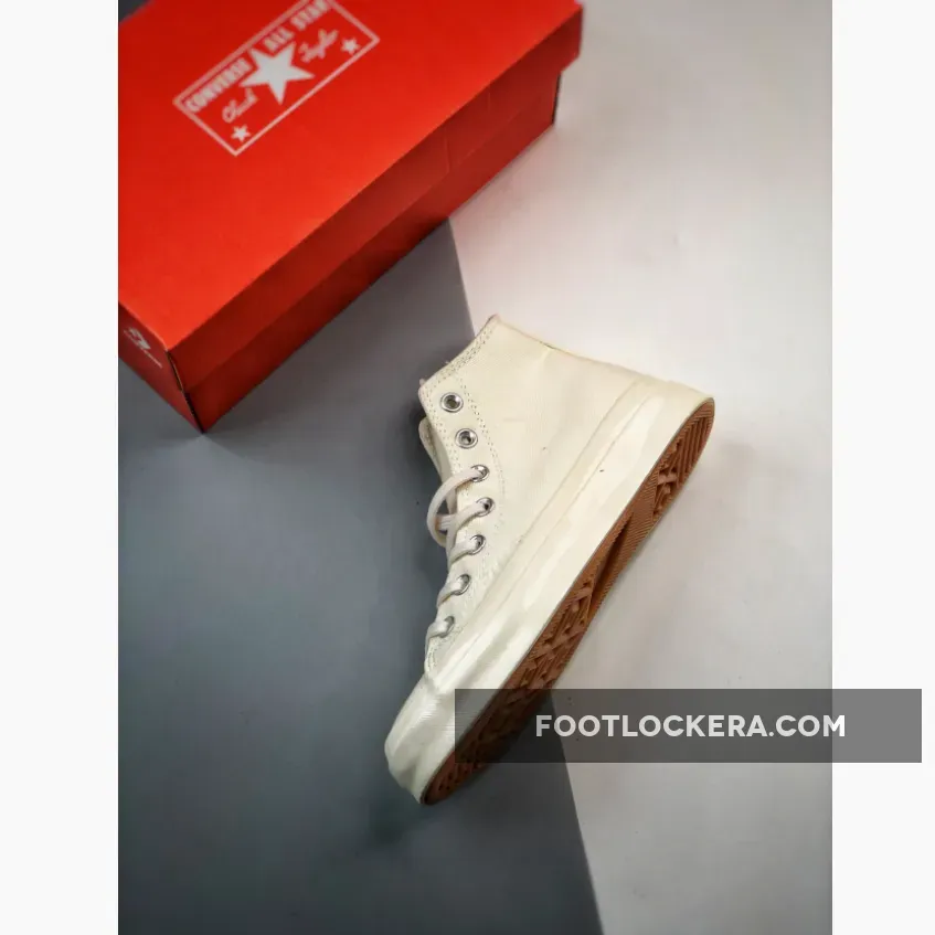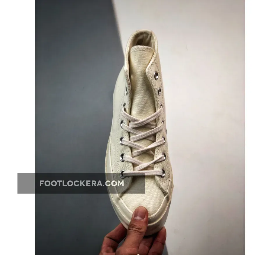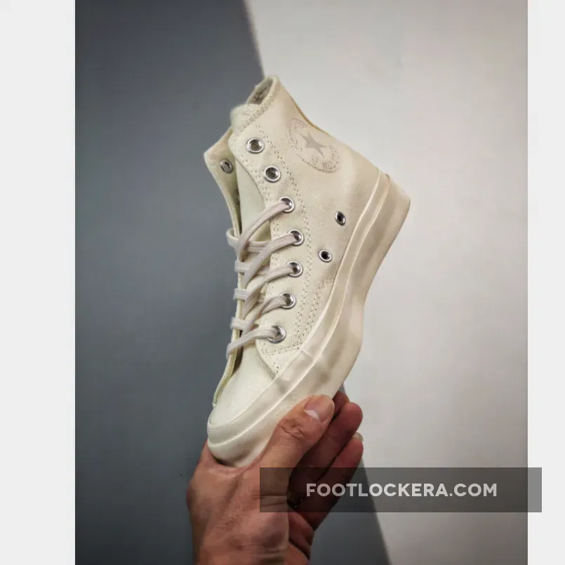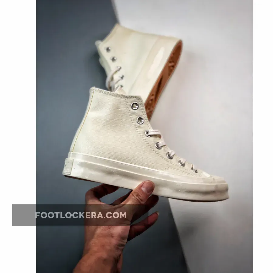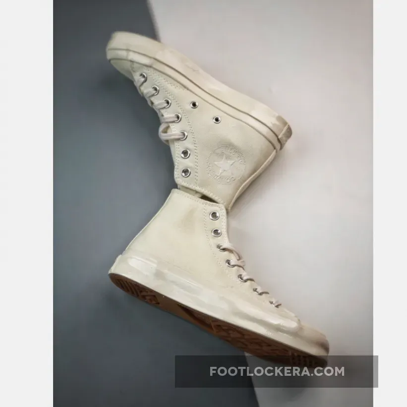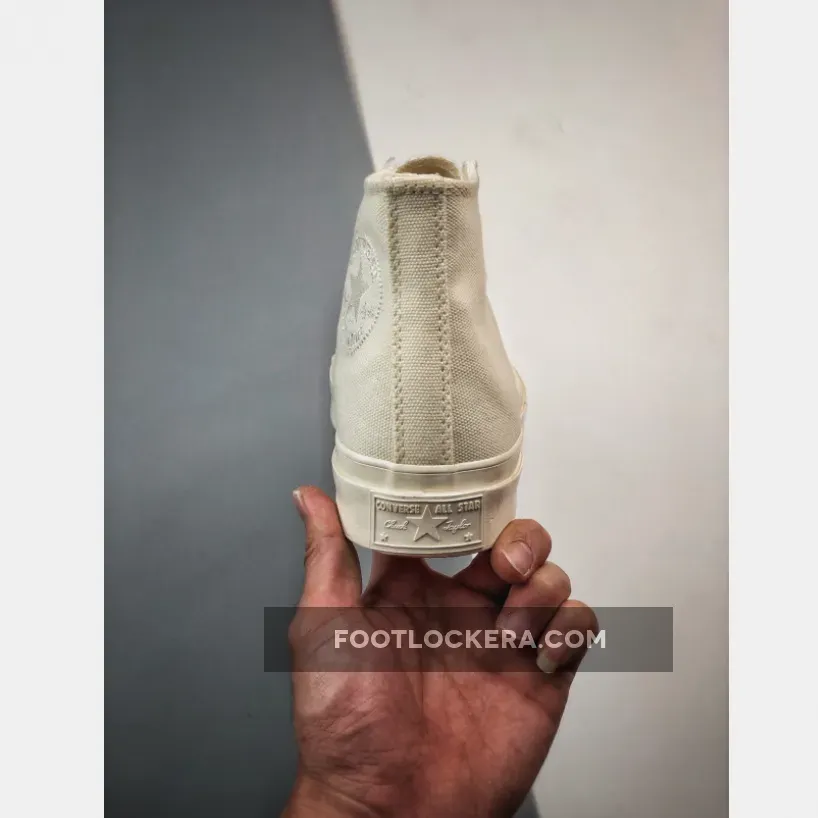 The Devin Booker x Converse Chuck 70 High ‘The Next Icon’ dresses the foundational silhouette in a clean, minimalist aesthetic that reflects the NBA star’s personal style. The high-top utilizes an undyed canvas upper, stripped of the traditional rubber toe cap and equipped with gleaming chrome eyelets. A tonal embroidered All Star patch decorates the medial ankle, while winged stitching embellishes the tongue. The sneaker sits atop a matching off-white midsole, reinforced underfoot by a grippy gum rubber outsole.