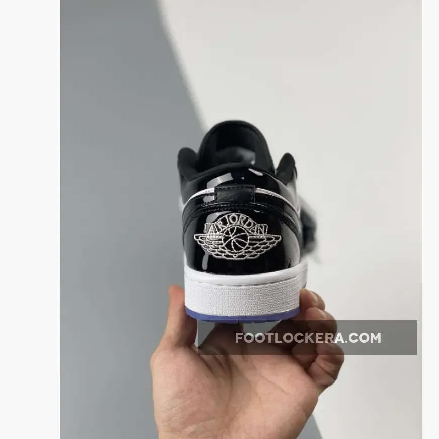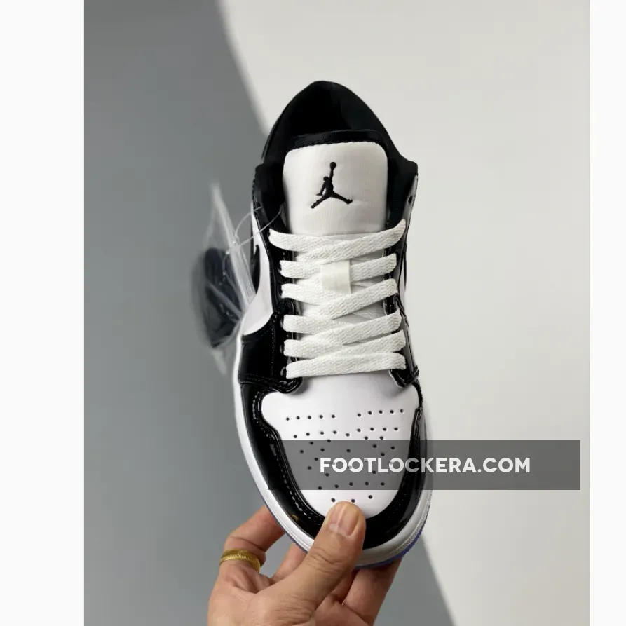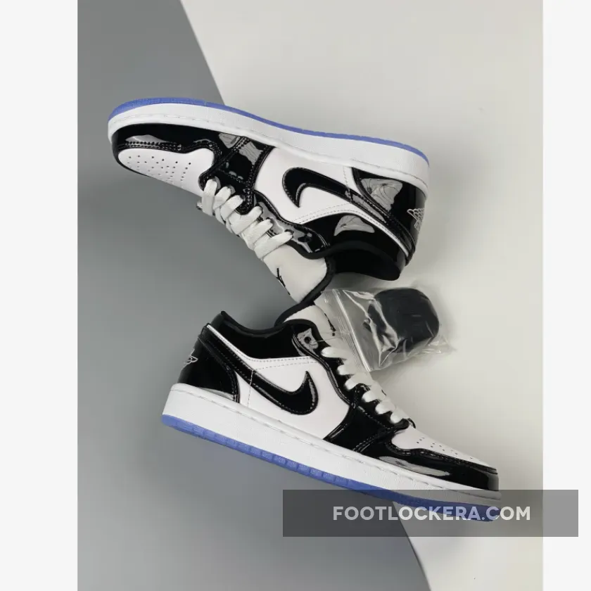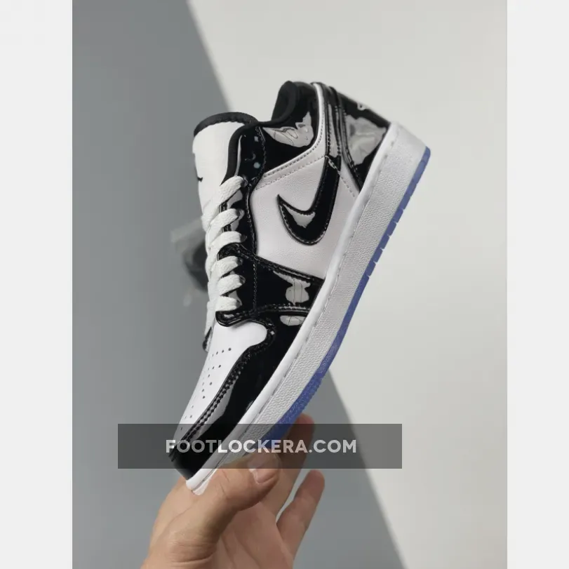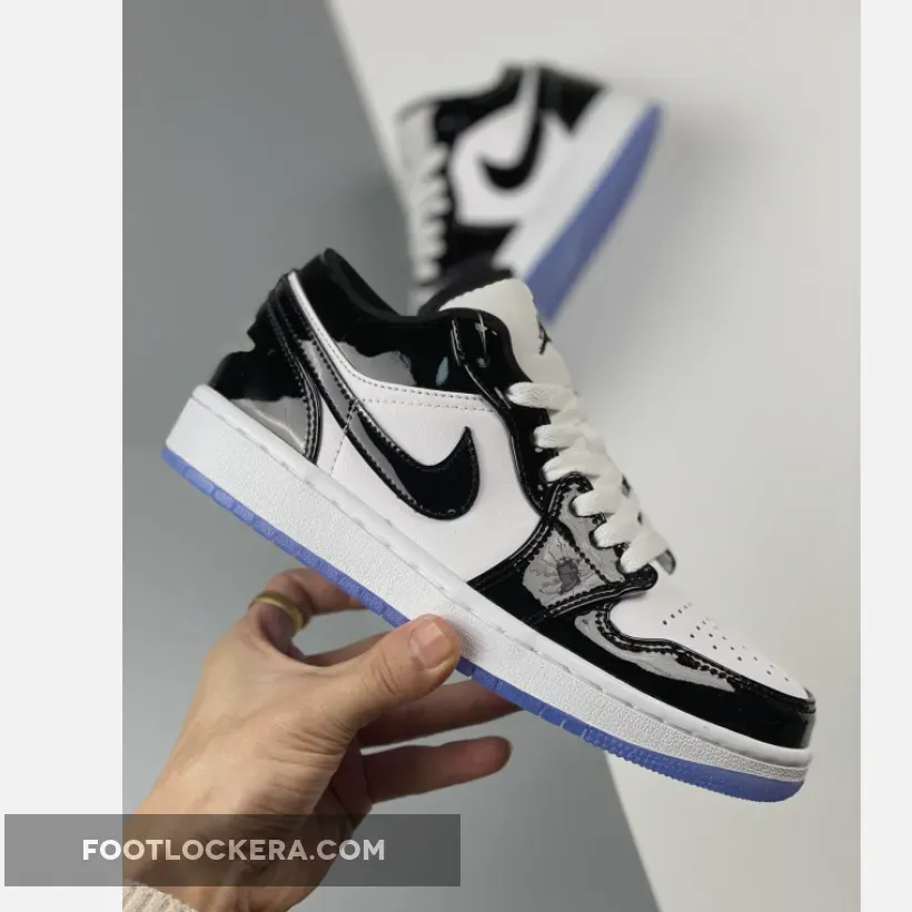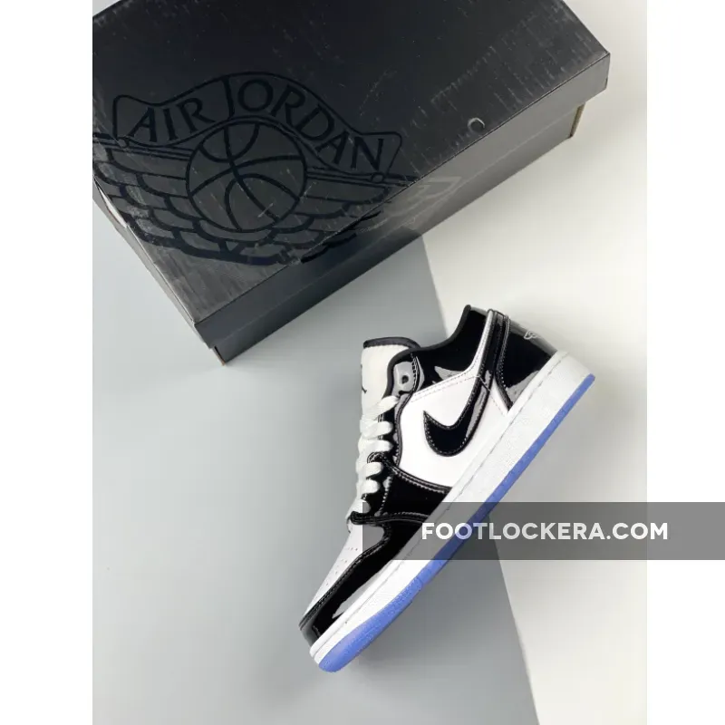 Sleek but eye-catching, the Air Jordan 1 Low Concord White Black features a simple monochromatic design that’s truly versatile. It starts with a smooth white leather base which covers the quarters and perforated toe. Meanwhile, shiny black patent leather overlays add reinforcement and a stylish flair. Classic Air Jordan 1 Low details such as the padded tongue, lightweight midsole with comfy cushioning and durable icy outsole complete this release. A modern classic.
