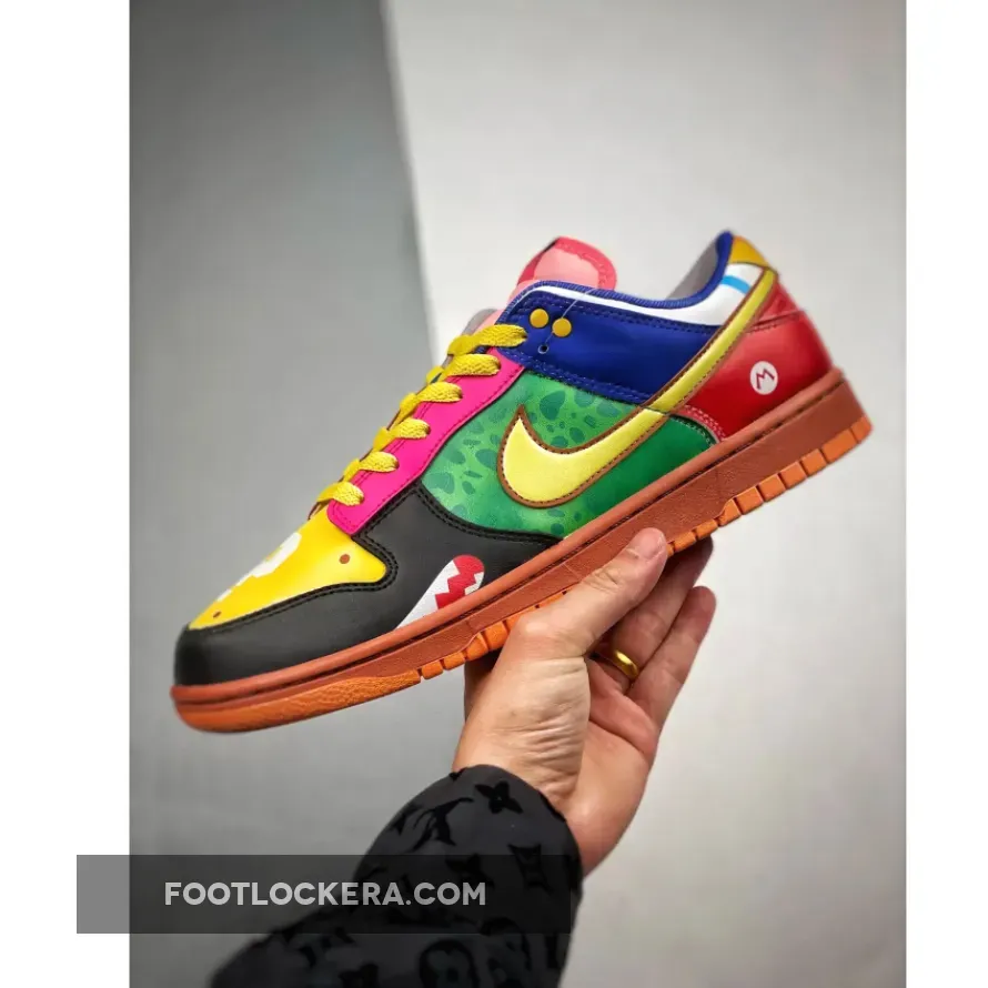 Andrew Chiou, a renowned shoe designer, has reimagined the legendary Nike Dunk Lows. The design of these low-top trainers draws inspiration from Mario, Bowser, Yoshi, Luigi, and other characters and items from the game’s memorable levels. It might require some time to understand, but each of the many colors and patterns has a specific significance within the overall framework of the game.