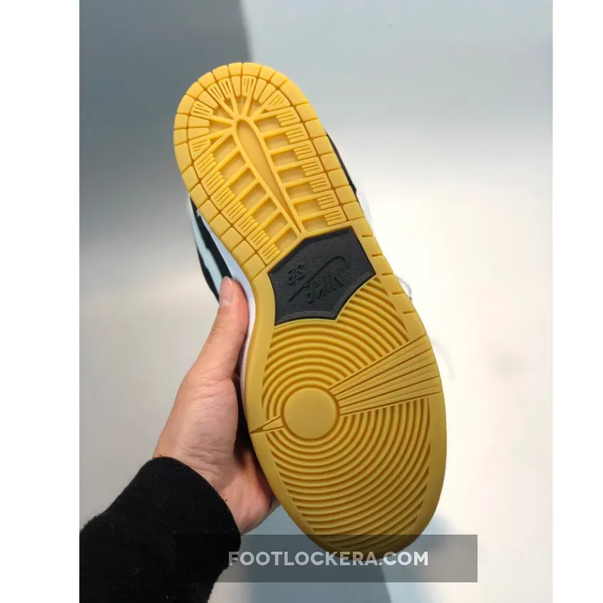 As you can see, this Nike SB Dunk Low features a Black, White and Gum Light Brown colorway resulting in a clean look. While predominate Black covers the uppers, they are constructed with leather on the base while suede runs across the overlays. Following we have White on the Nike Swoosh, branding and through the midsole. Finishing the look is Gum on the outsole.