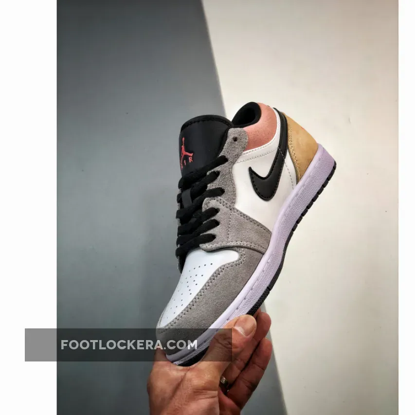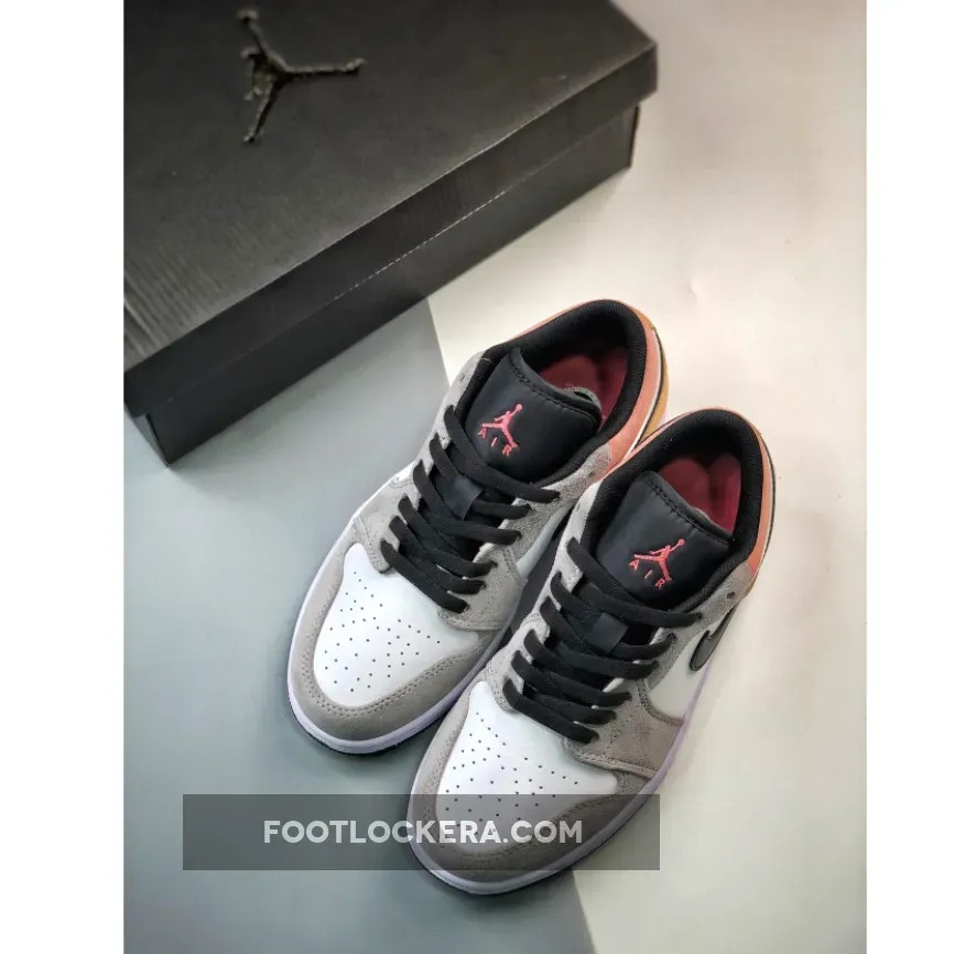 The Jordan Brand’s b-ball shoe that has become one of the most popular and iconic sneakers of all time, the Air Jordan 1, has a new release that joins the brand’s “Flight Club” collection. Check out the Air Jordan 1 Low SE “Flight Club”.This low-cut AJ1 starts out with a smooth leather base in “colourless” white, similar to other silhouettes in the collection. The suede toe cap, mudguard and eye stay panels are in a faded grey. The suede sections at the rear, the collar underlay and the heel counter, shows off a light sunset peach colour. The signature profile Swooshes on the mid-panels are in pitch black, matching the laces, nylon tongues and the mesh sock liners. An embroidered peach Jumpman stands out on the tongues.