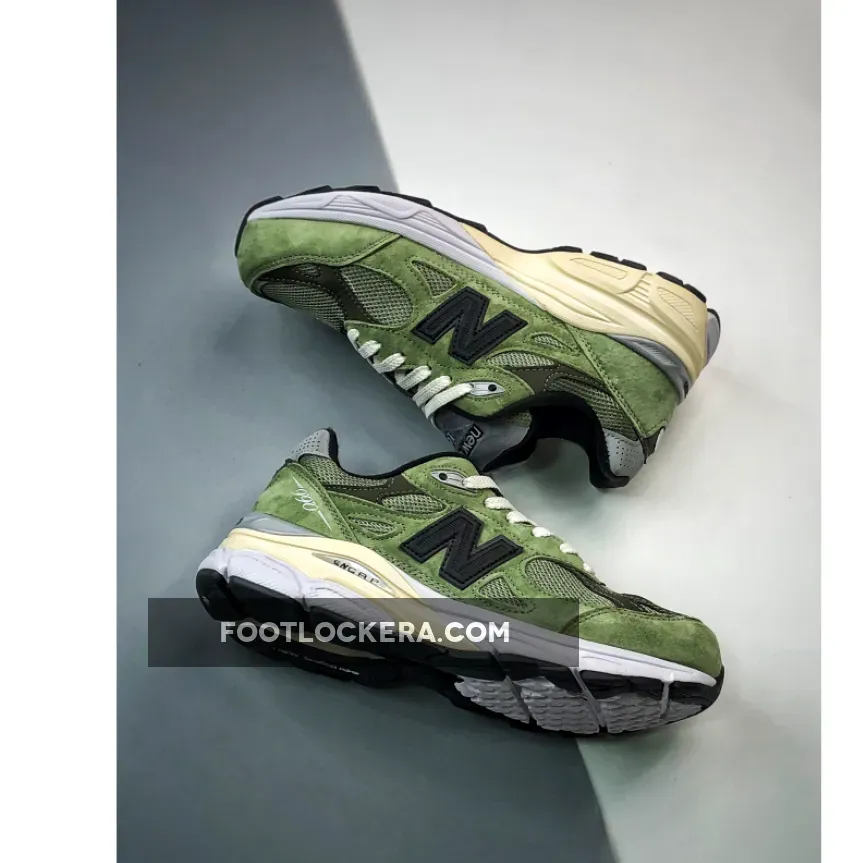 The JJJJound x New Balance 990v3 Made in USA ‘Olive’ reunites designer Justin Saunders with the third iteration of the vaunted 990 series. A rich olive green hue permeates the upper, crafted from breathable mesh with soft pigskin suede overlays. A black ‘N’ logo adorns the quarter panel, while JJJJound branding is inscribed on the reflective silver heel tab. The sneaker is mounted on New Balance’s ENCAP midsole, featuring a plush EVA core with a supportive and durable polyurethane rim.