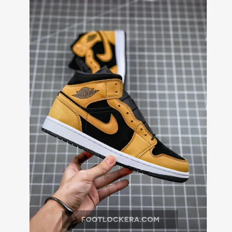 The Air Jordan 1 Mid Wheat Desert Ochre features a premium design with luxurious materials and a classic color scheme. The wheat suede overlays and black nubuck colorway exude an autumnal vibe, while the rope laces add a touch of toughness. The combination of these elements creates a stylish and versatile sneaker perfect for colder months.