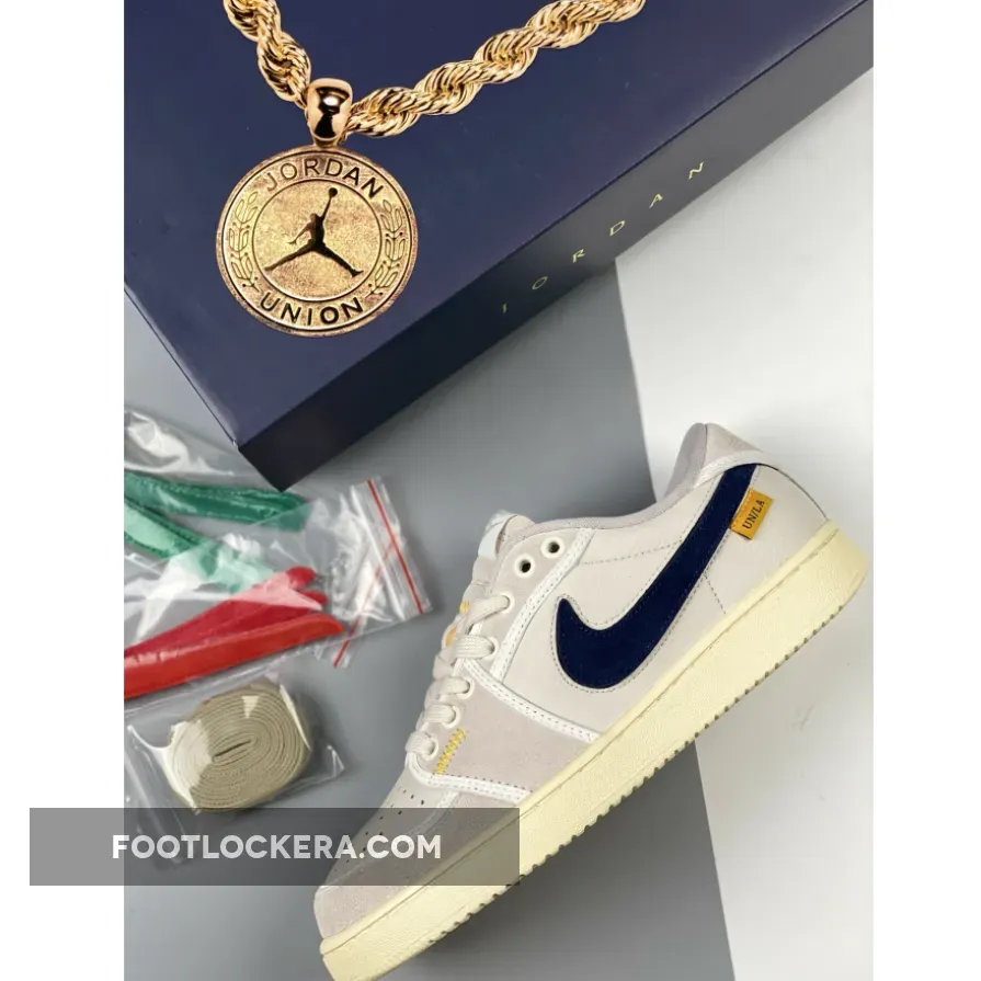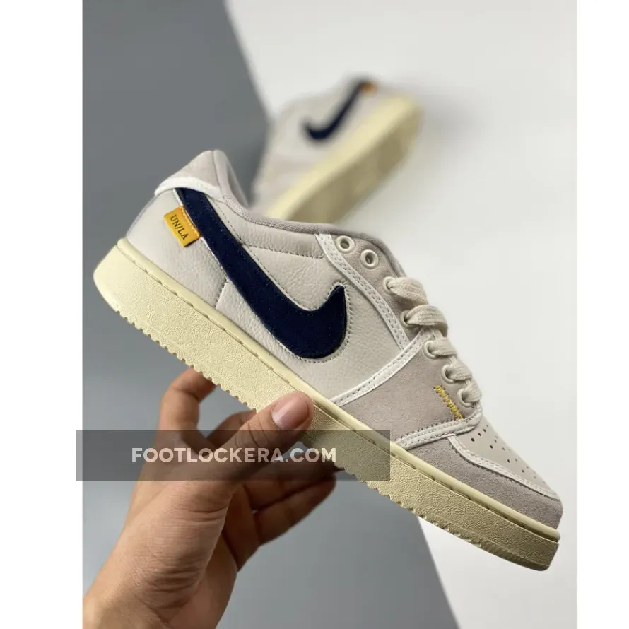 Set to arrive in two color options, this offering of the Union x Air Jordan 1 KO Low comes dressed in a mix of Sail, Muslin, and Neutral Grey. It features a leather base with suede overlays, interchangeable Swooshes, Union lateral branding atop a Muslin rubber sole. Extra set of laces housed in co-branded packaging completes the design.