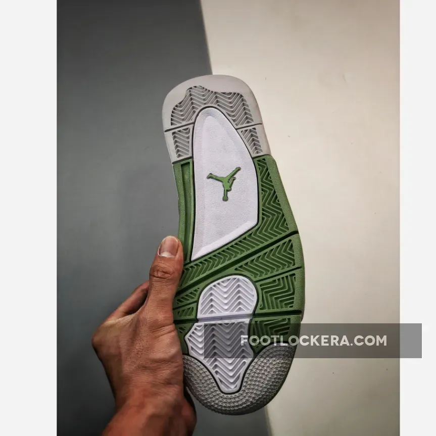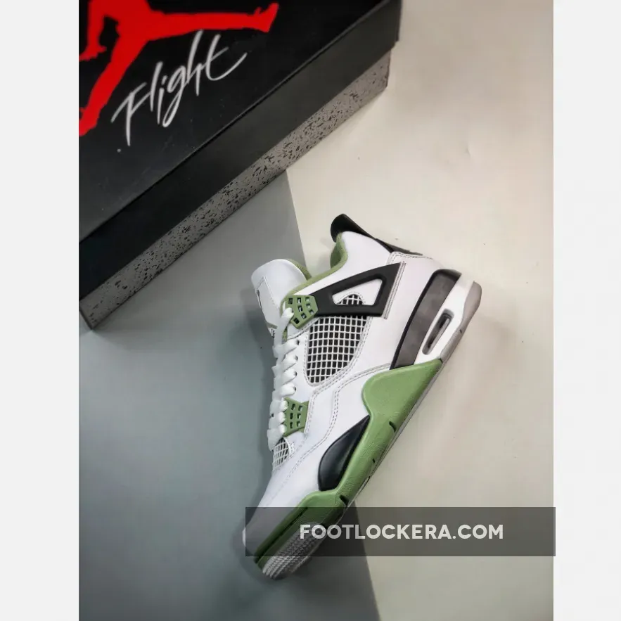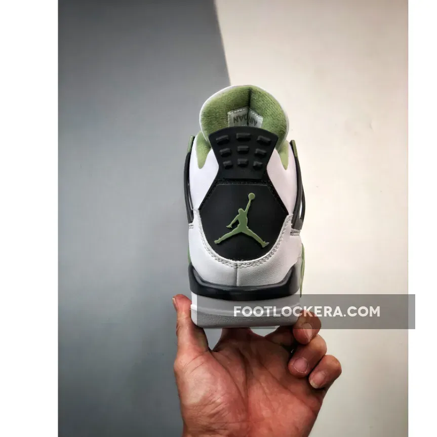 The Air Jordan 4 Seafoam (W) received the same color-blocking treatment as the Jordan 4 Fire Red, and Jordan 4 Military Blue. Seafoam green eyelets, mudguard, sock lining, and tongue and heel logos, add a layer of contrast to the sneaker.