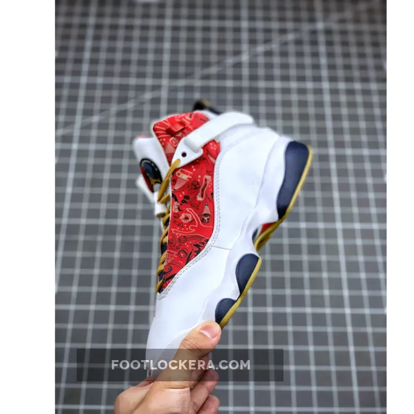 This time, it is a White/Wheat-Varsity Red-Midnight Navy colorway. From the pictures, one can see the Jordan Championship legacy on the upper, including Jordan’s famous pose holding up the number five in his left hand and number one in the other to signify his sixth and final NBA Championship. Also on the print is Jordan’s “Last Shot,” his Free-Throw Line Dunk, a mailbox to pay tribute to Karl “The Mailman” Malone, and, of course, a Championship Ring.