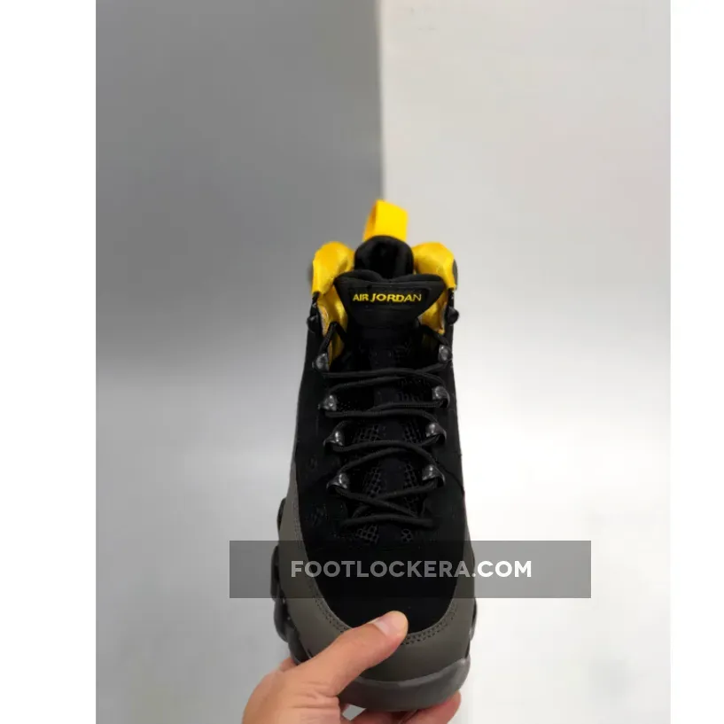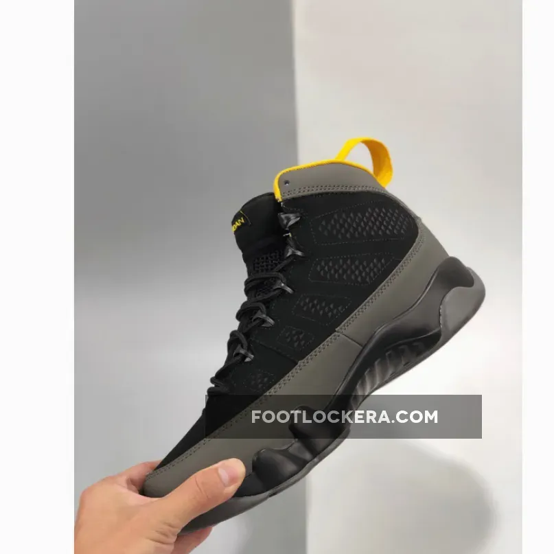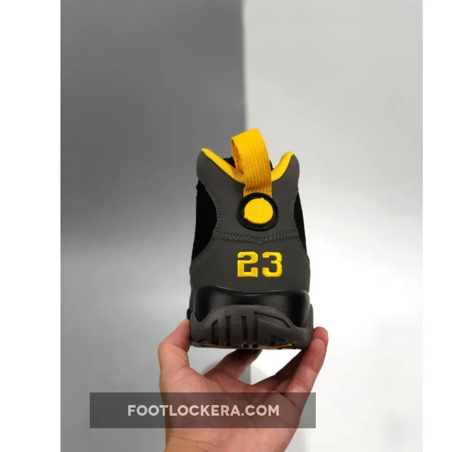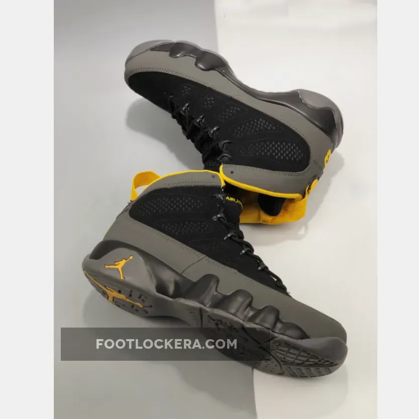 Designed by Tinker Hatfield in 1993, the forthcoming release of the Jordan 9 University Gold is a new colorway that gives a striking resemblance to the Air Jordan 9 “Citrus” which tells us that this will be a new fan-favoured iteration. The upcoming Air Jordan 9 gives a subtle approach to its OG colourway while adding a slight twist to its colour scheme. Showcasing a combination of black subdued tones, dark charcoal upper adorns the panel that runs from its lateral front and curves all the way up to its neck collar. Elsewhere, stealthy black colourway drapes on its genuine Nubuck leather broadened across its quarter panels for an ultra-premium aesthetic look.Highlighting the pair are pops of University Gold accents throughout core components of the shoe, such as the tongue, heel, and inner lining. This sneaker wouldn’t be complete without Michael Jordan’s iconic Jumpman logo embossed on its midsole in the same hue of yellow then finished off with a black outsole unit for optimum durability.A must-cop for Jordan brand fans, the Nike Air Jordan 9 Charcoal University Gold is a shoe you shouldn’t miss. Hitting select retailers and Nike across the globe, the pair will be available in full family sizing so if you’re planning to cop for the entire family, make sure you also stay with Our Store Supplier family to make sure you can secure these for its retail price.
