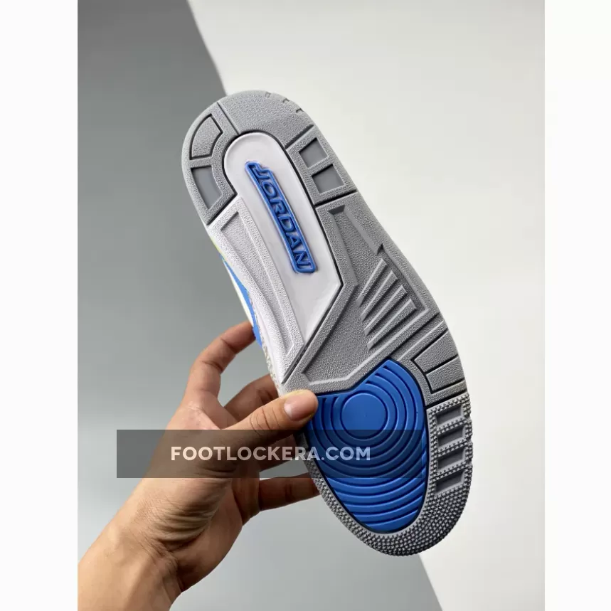 With the obvious #23 branding on the lateral wall, the pair directly calls out Michael’s retired UNC jersey number – as well as the current calendar year. It’s nestled amongst a simple sail and white leather set, with tonal elephant print midpanels, and classic white and grey soles. Pops of bright UNC blue dress the midfoot Swoosh, liners, and aforementioned #23, while blue-to-lemon gradients at the heel add a summery touch to the silhouette.
