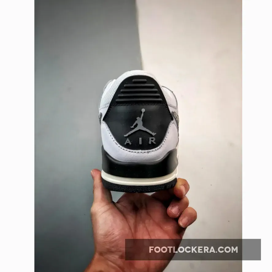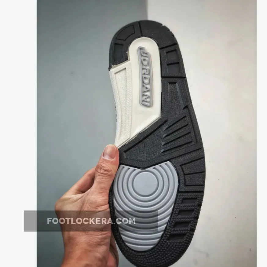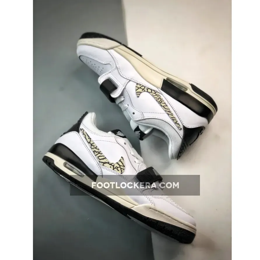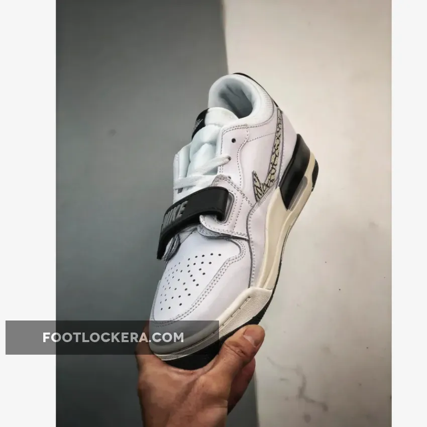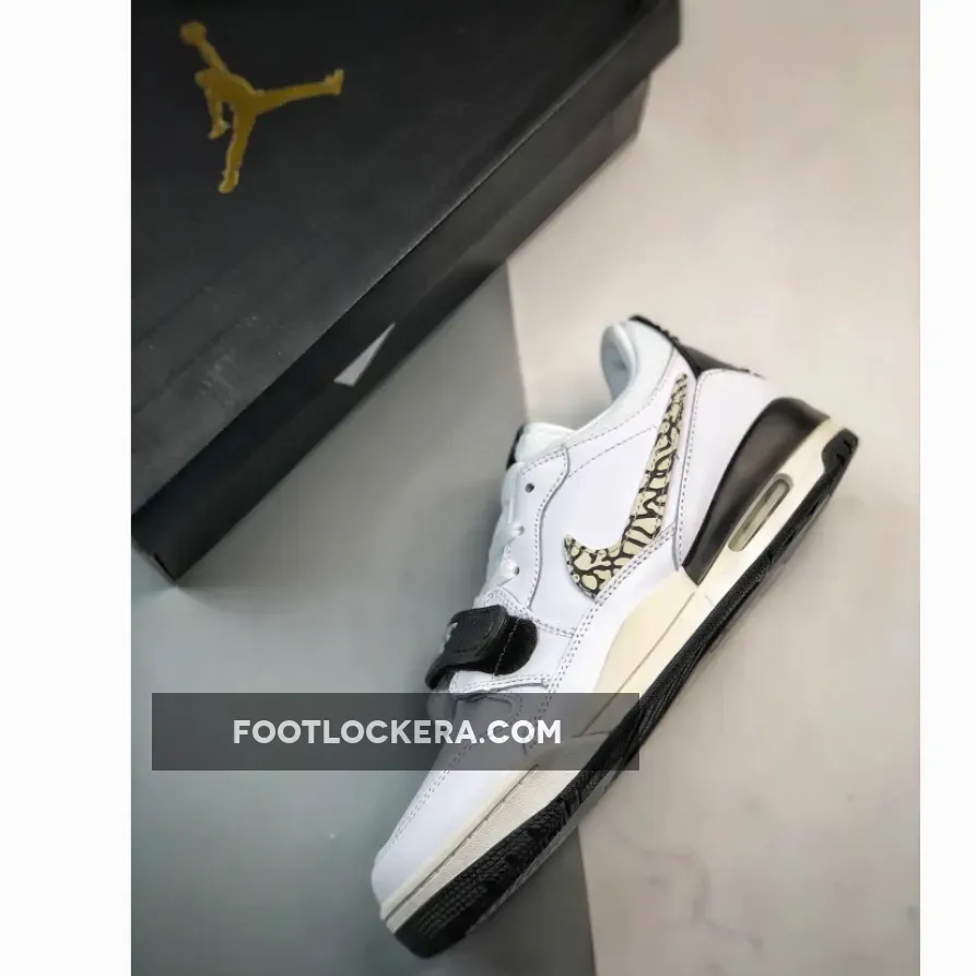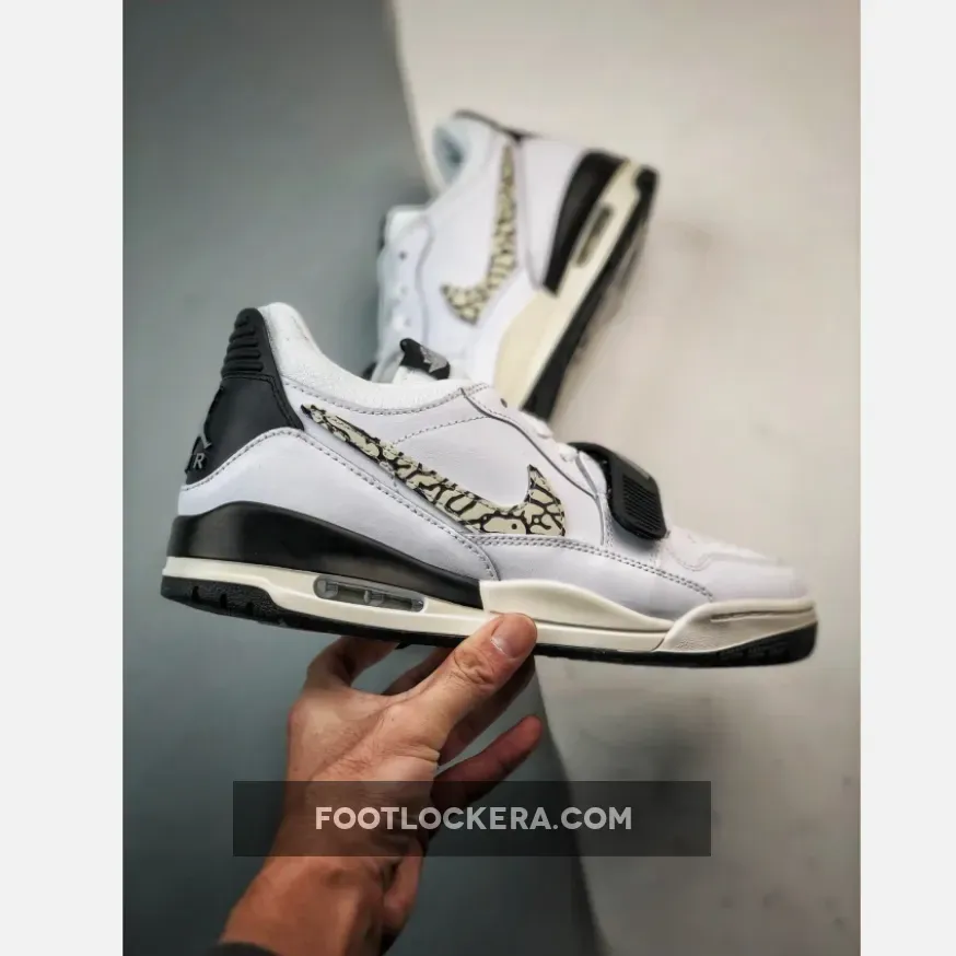 this Jordan Legacy 312 Low dons a White leather construction all over the upper with perforations hitting the toes and mesh detailing on the ankles and tongues. This minimalist approach allows the more intricate details to shine, particularly the “Cement Grey” swooshes adorned with the iconic elephant print pattern — a hallmark of Tinker Hatfield’s designs for the Air Jordan line, namely his first design for the Jumpman Brand, the Air Jordan 3. The pair then sits atop a fittingly colored sole unit, with off-white midsole injecting a vintage feel, while the old-school black outsole ensures durability and traction underfoot.