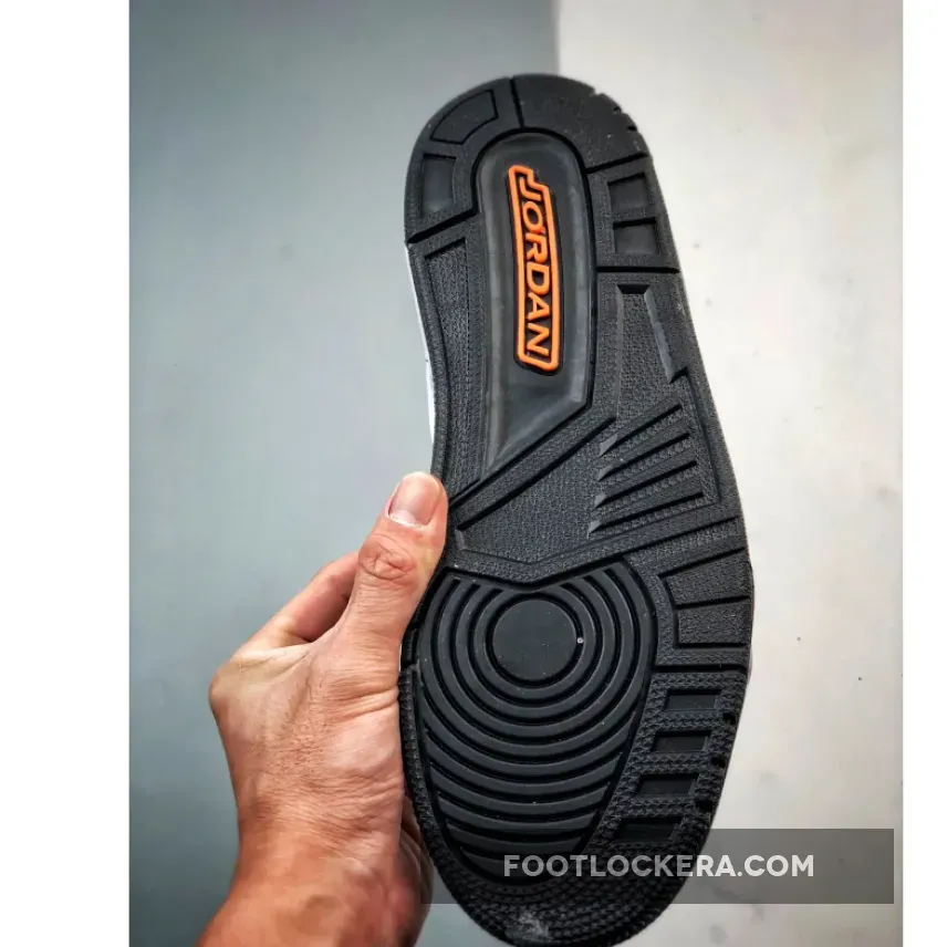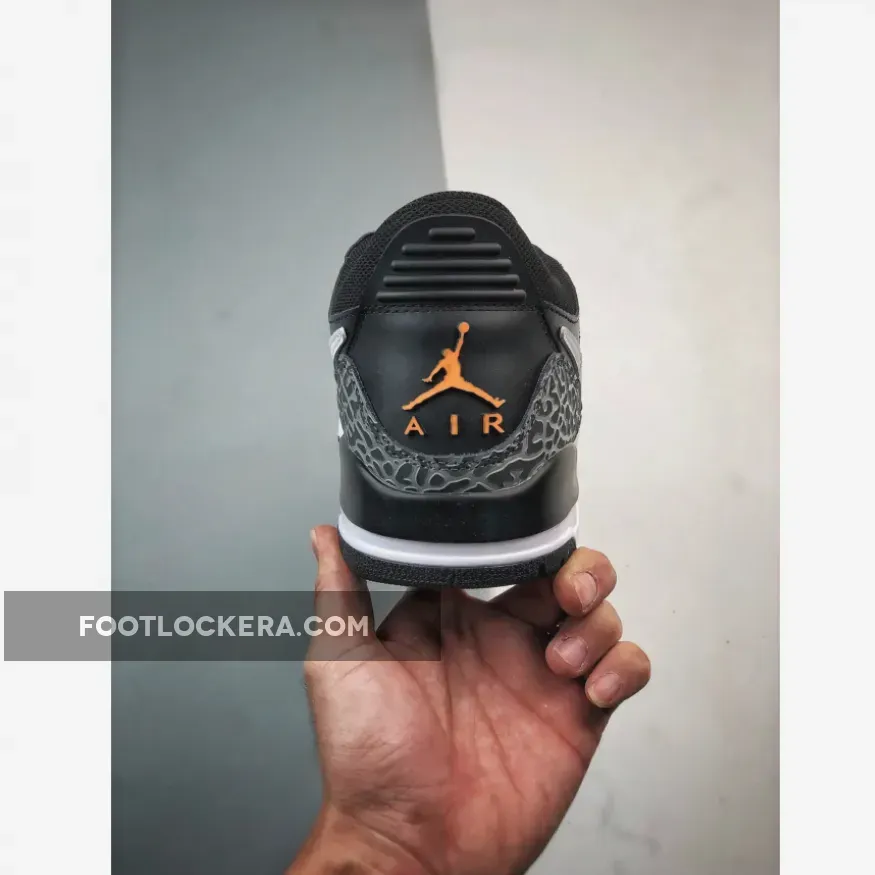 Vibrant Orange accents on branded areas infuse the shoe with the distinctive “Fear” aura but also pay homage to the original Jordan 3 Fear colorway.