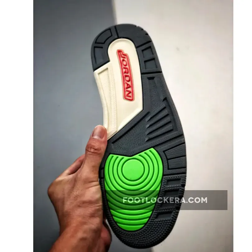 This offering comes crafted in leather and mesh materials mixed with hints of neon green and orange throughout its upper. Other details include khaki toe boxes and eyelets paired with black Nike Checks and a black lace strap. Highlighting the pair are gradient accents on the midsole, followed by an elephant print on the heel. Wrapping up the rendition is Jordan branding on the heel with a white and grey sole.