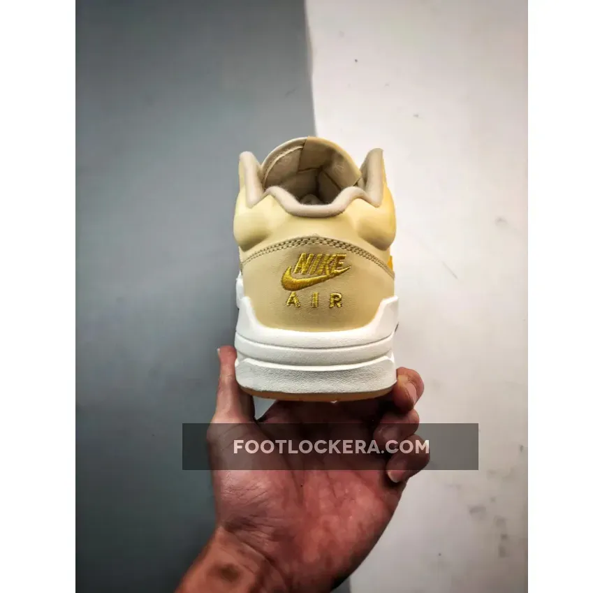 The sneaker celebrates simplicity and elegance, boasting a minimalist color palette that allows finer details to shine. The upper is crafted from a serene blend of beige and cream leather, creating a subtle yet luxurious aesthetic. This understated base is enlivened by golden suede Swooshes and tinted forefoot teeth that sweep across the sides, injecting a vibrancy reminiscent of sun rays.