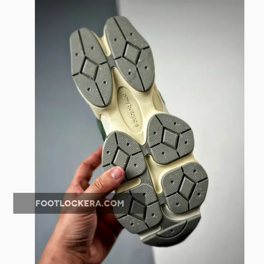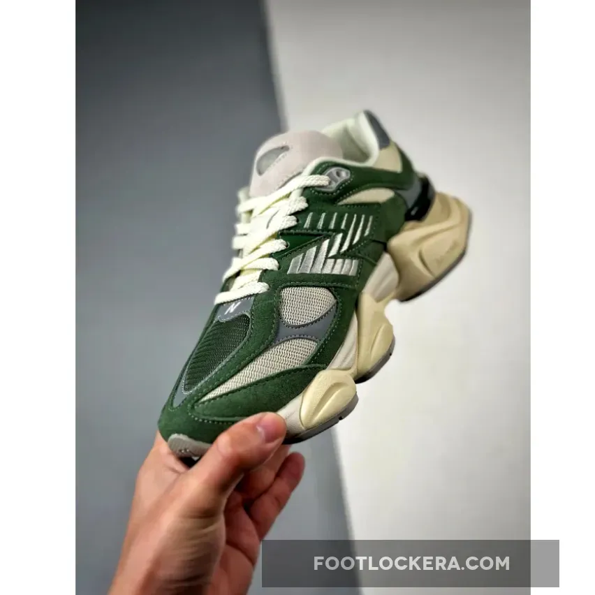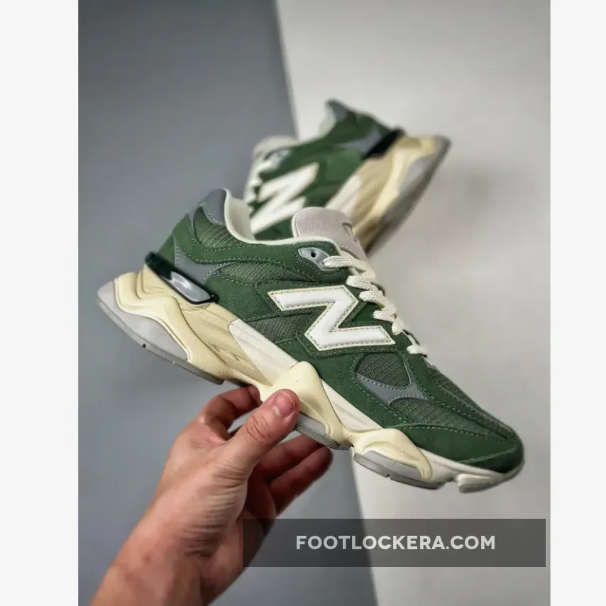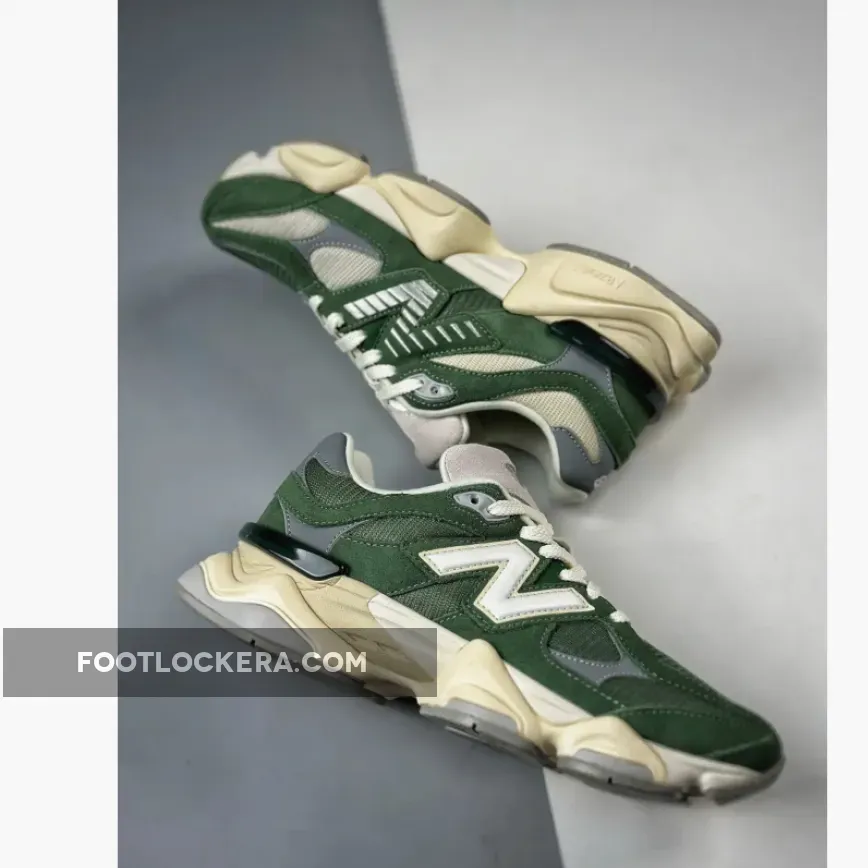Drawing inspiration from the legendary New Balance 99X Series, the NB 9060 infuses throwback running shoe design with chunky proportions to form a futuristic makeover. Retro details include the mesh and pigskin suede upper construction, decorated with a large N logo on the sides. Meanwhile, ABZORB and SBS cushioning combine dual-density properties to make up the double-stacked midsole. This “Nori” colourway borrows the colours of the namesake Asian delicacy of dried edible seaweeds. The shoe flaunts a dark green mesh upper with lighter green shades on the pigskin suede overlays. Grey pigments adorn the synthetic leather panels on the forefoot and rear, a signature New Balance style. Sail white accents appear on the tongue and “N” branding, while the chunky midsole dons assorted vintage-inspired neutral tones for consistency. The grey segmented outsole completes this fresh, leafy makeover.