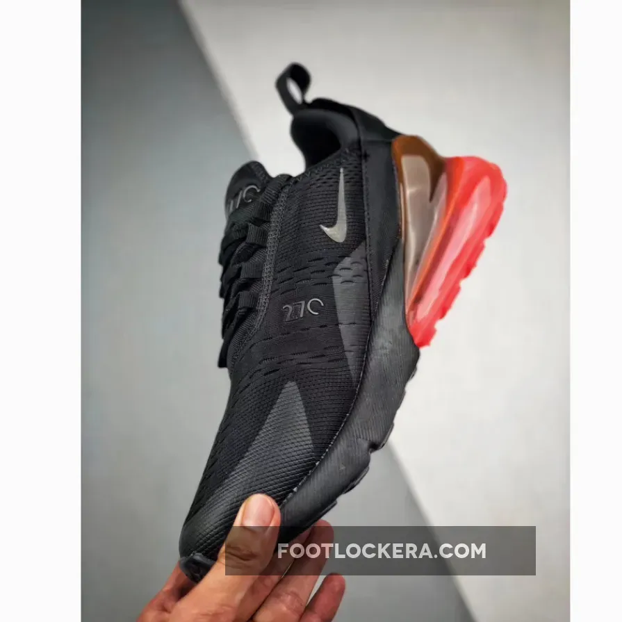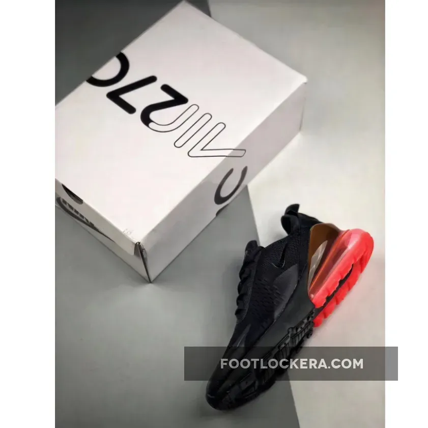 Dressed in a Blacka and Hot Punch color scheme. This Nike Air Max 270 features a Black engineered mesh upper highlighted with its 270 degree air bag as a nod to the Air Max 180 and Air Max 93.